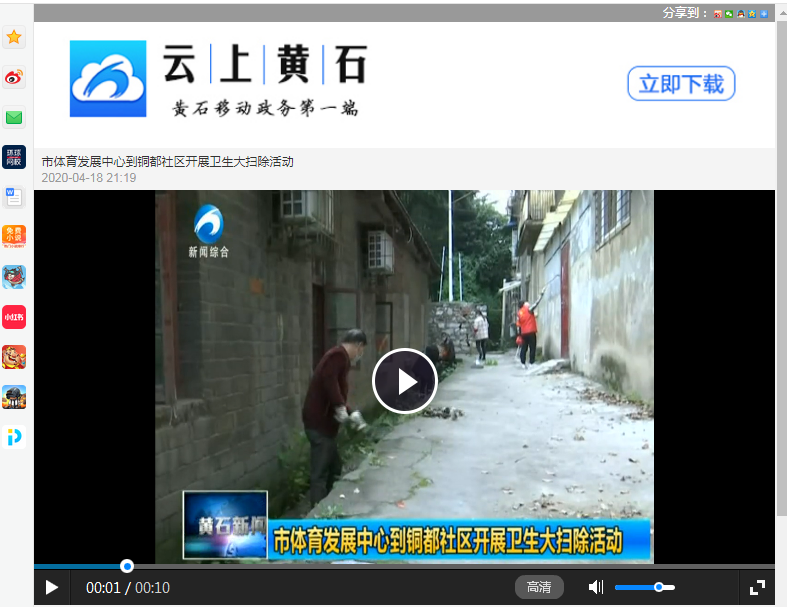 黄石新闻综合频道报道市体育事业发展中心到铜都社区到铜都社区开展卫生大扫除活动