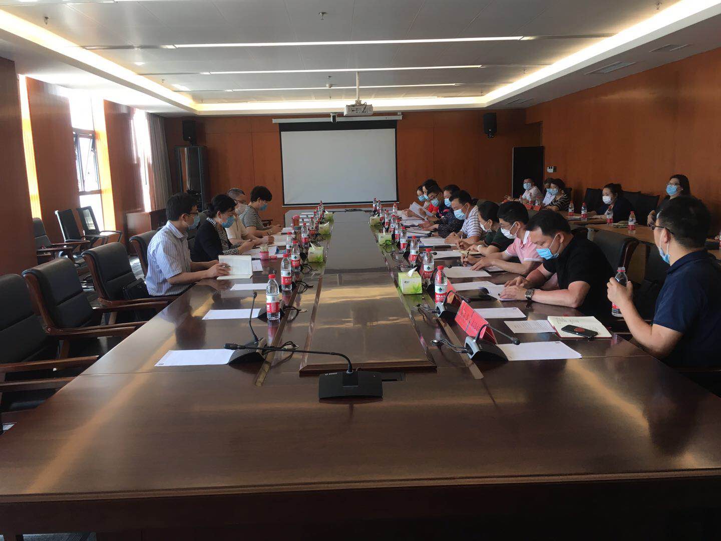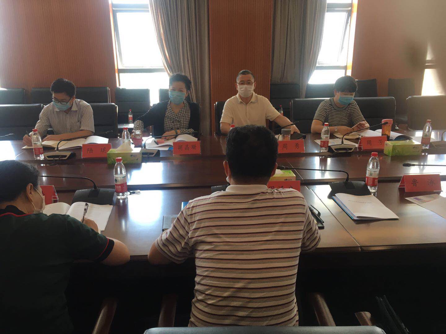 5月19日上下午,省体育局副局长周勇一行在奥体中心游泳馆会议室召开座谈会