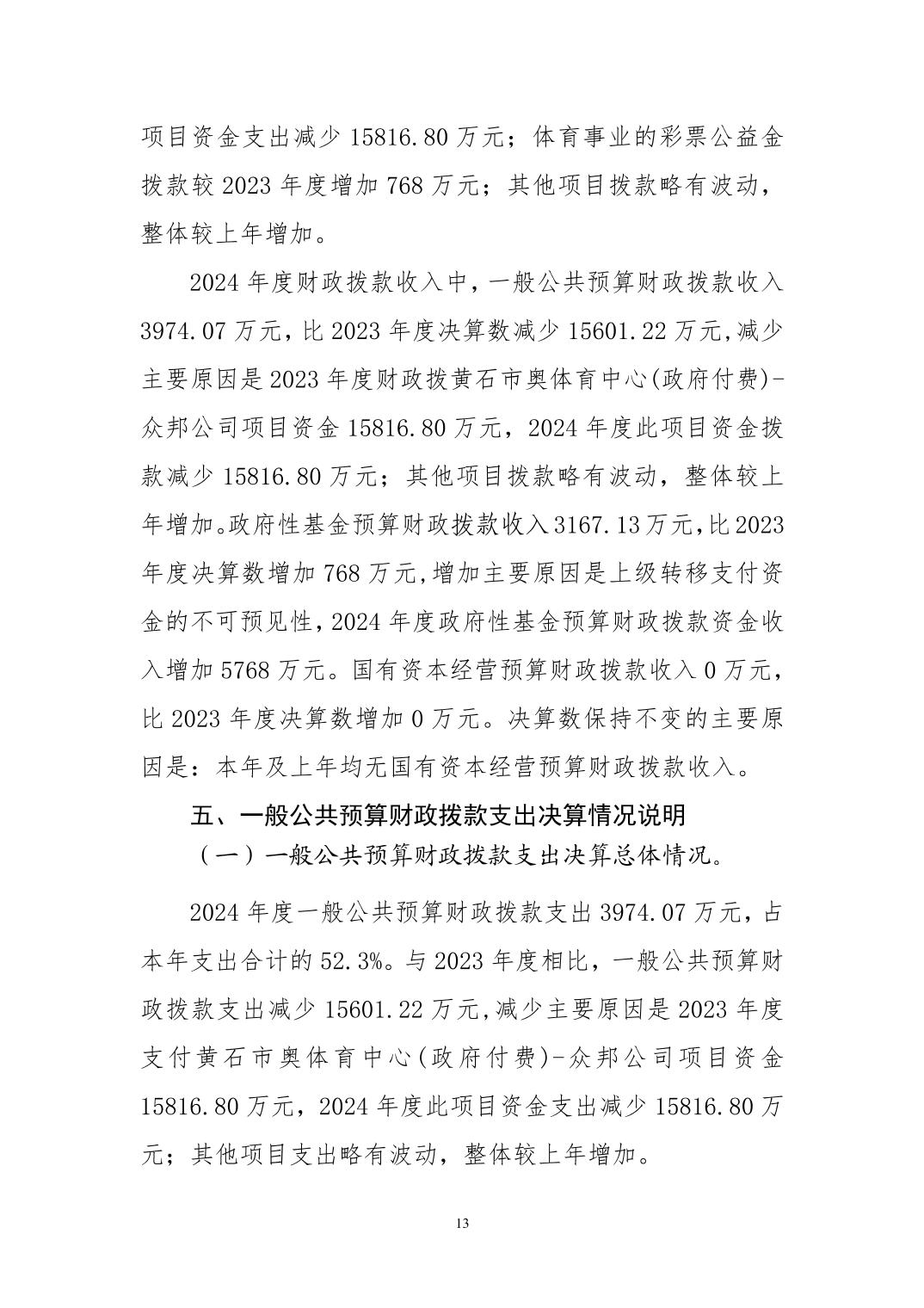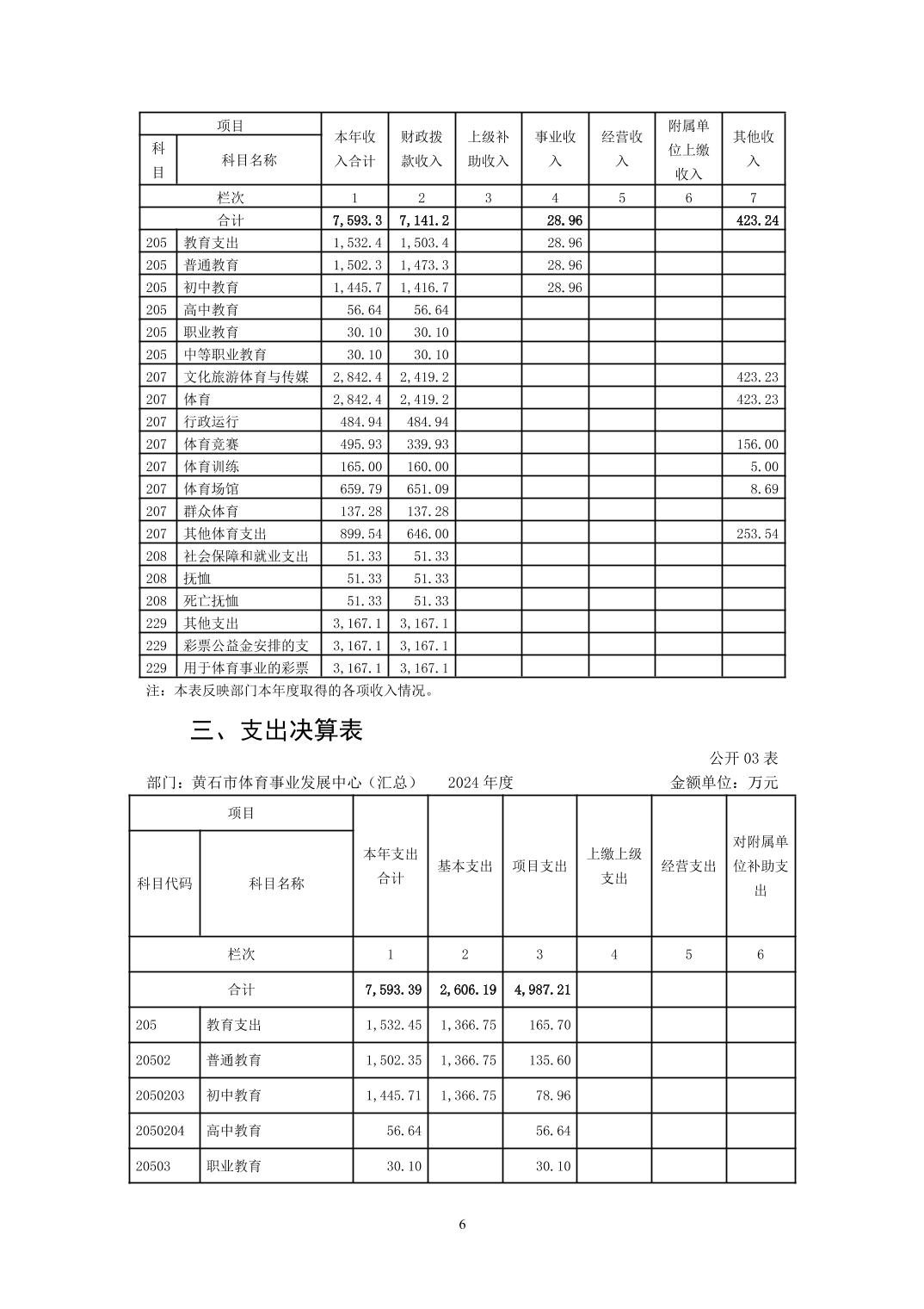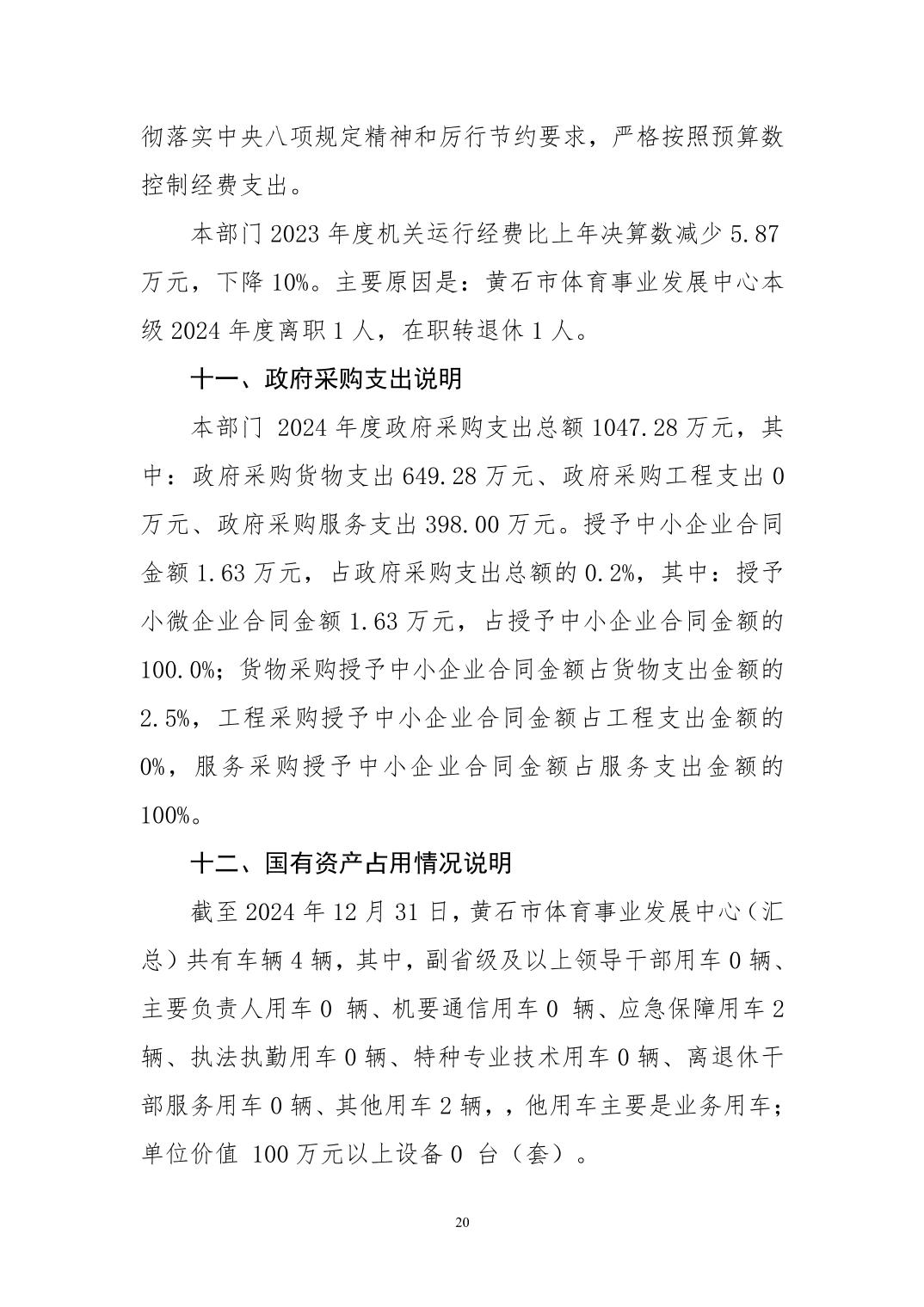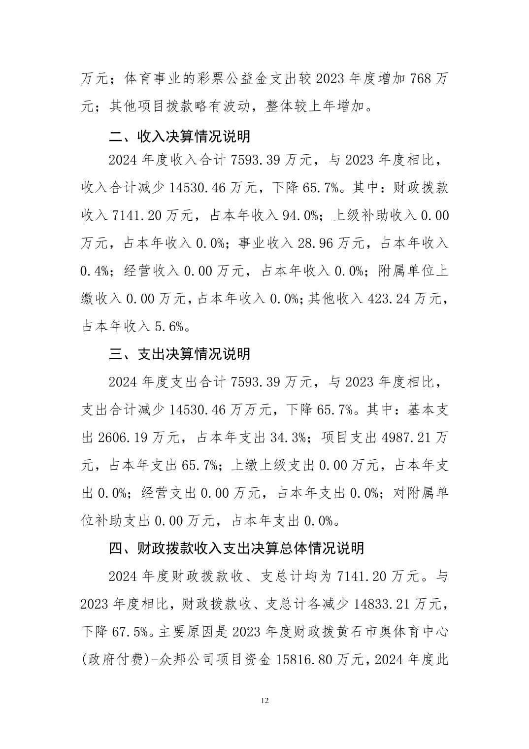 黄石市体育事业发展中心(汇总)2024年度部门决算公开