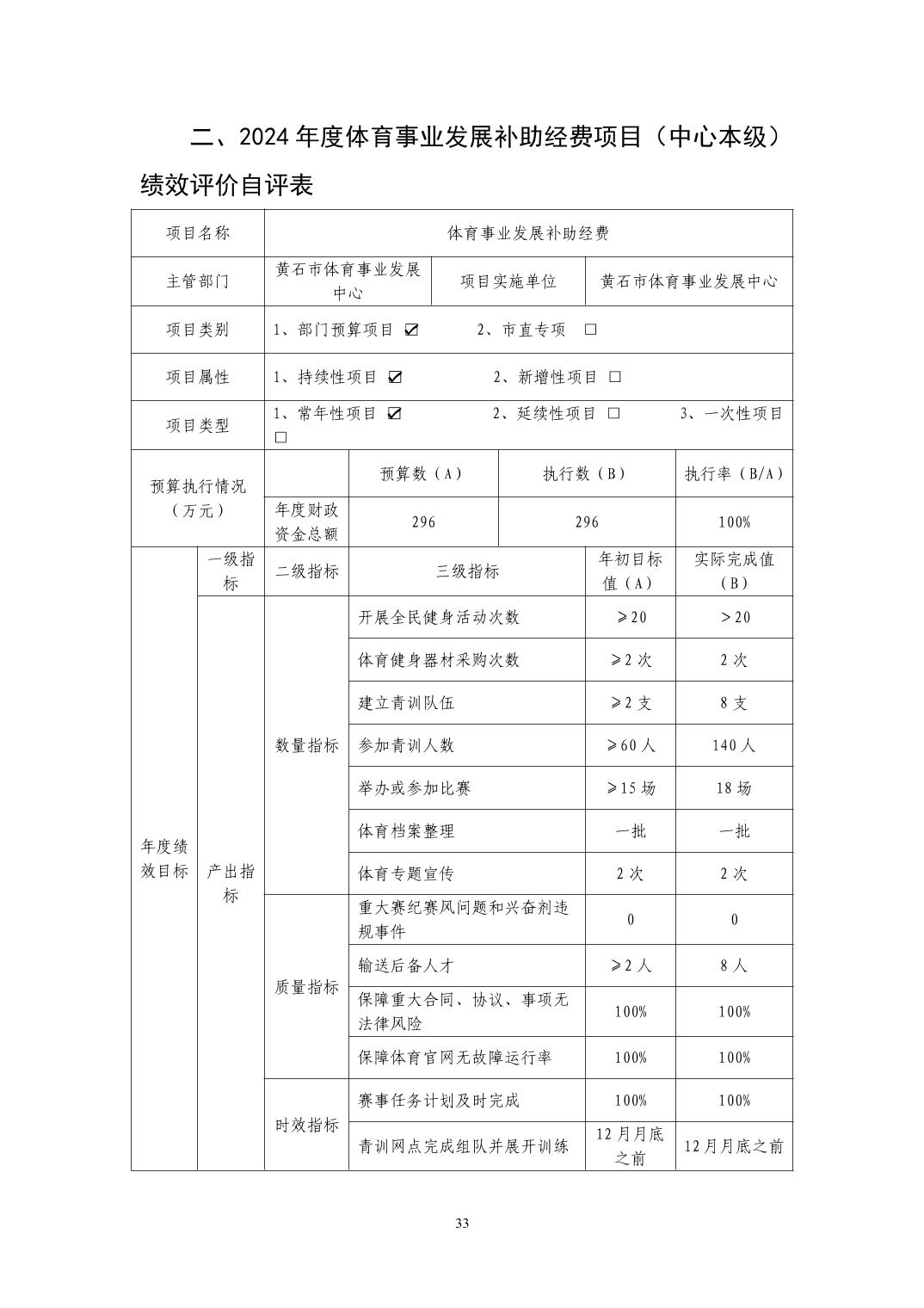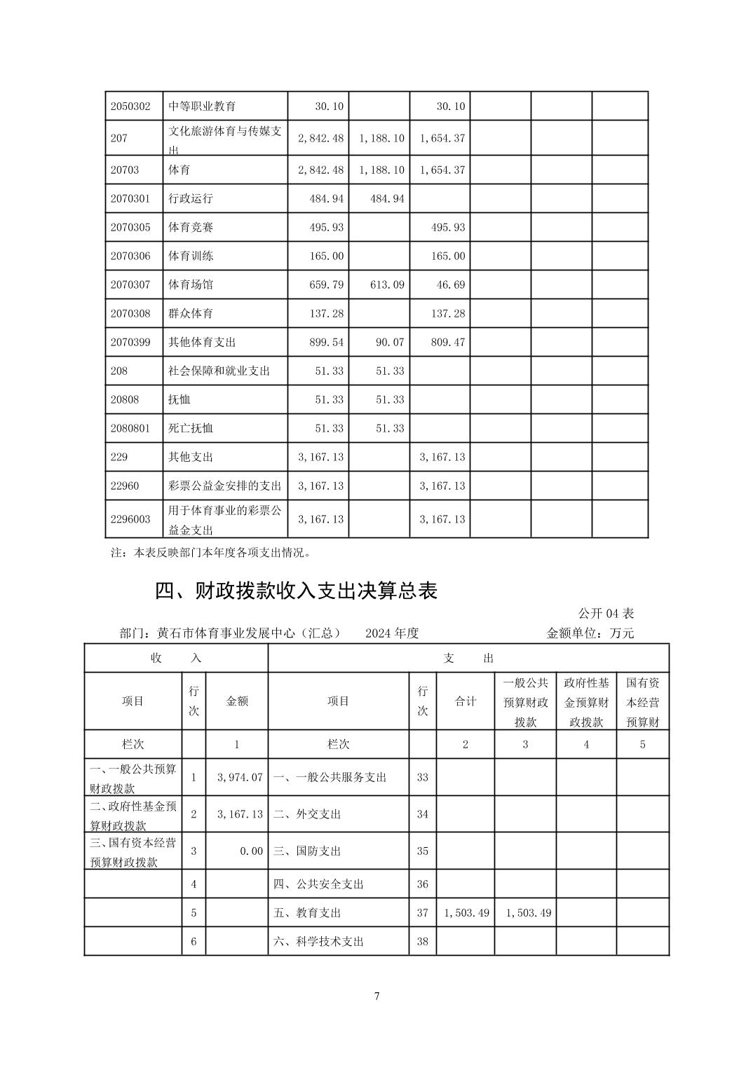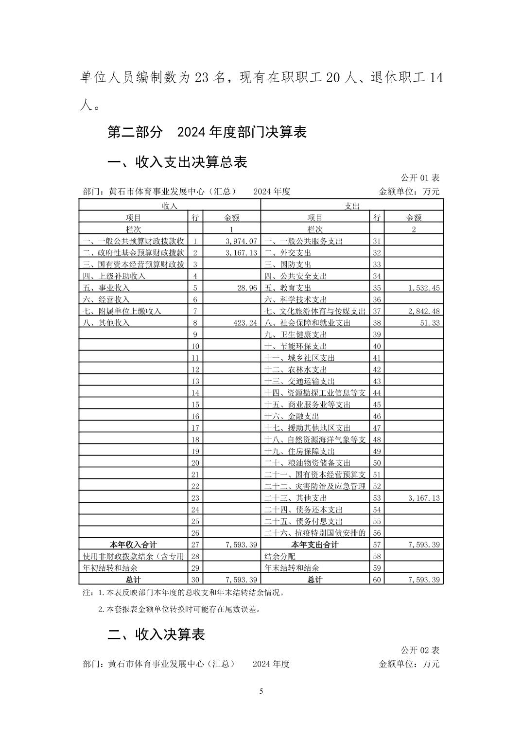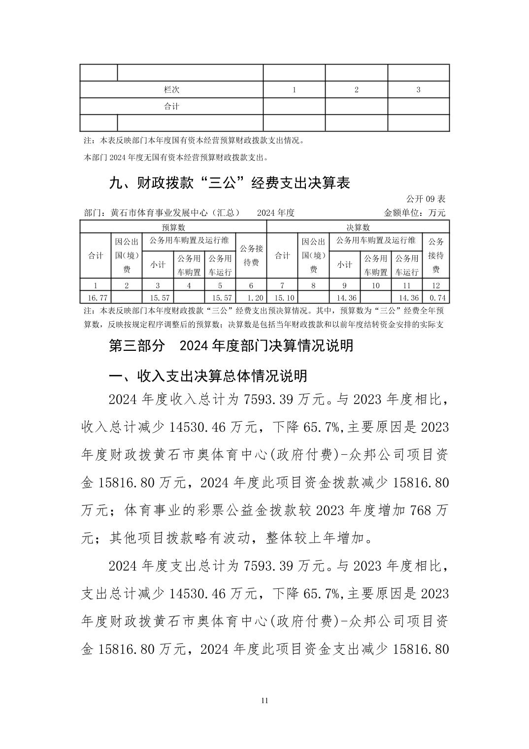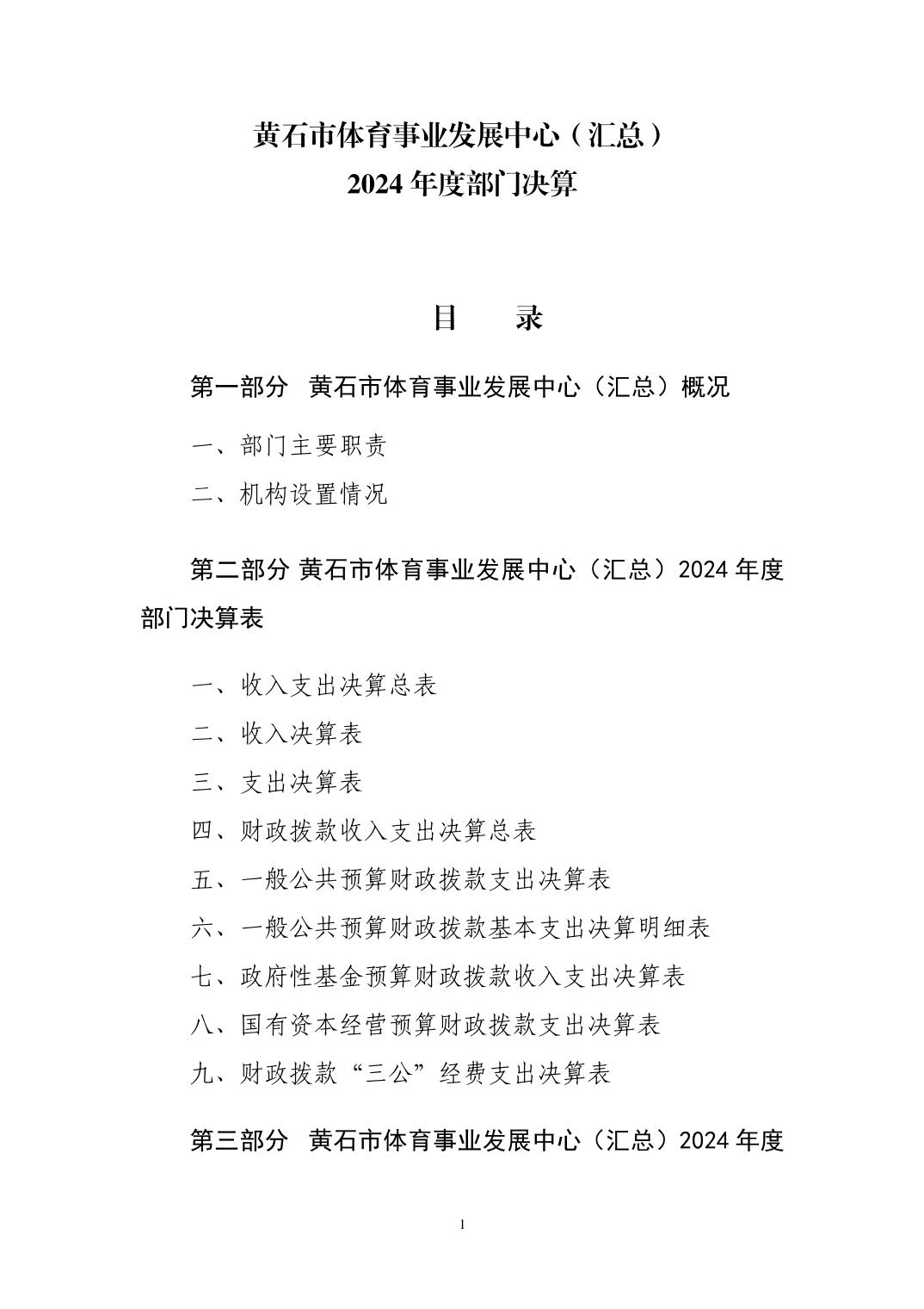 黄石市体育事业发展中心(汇总)2024年度部门决算公开