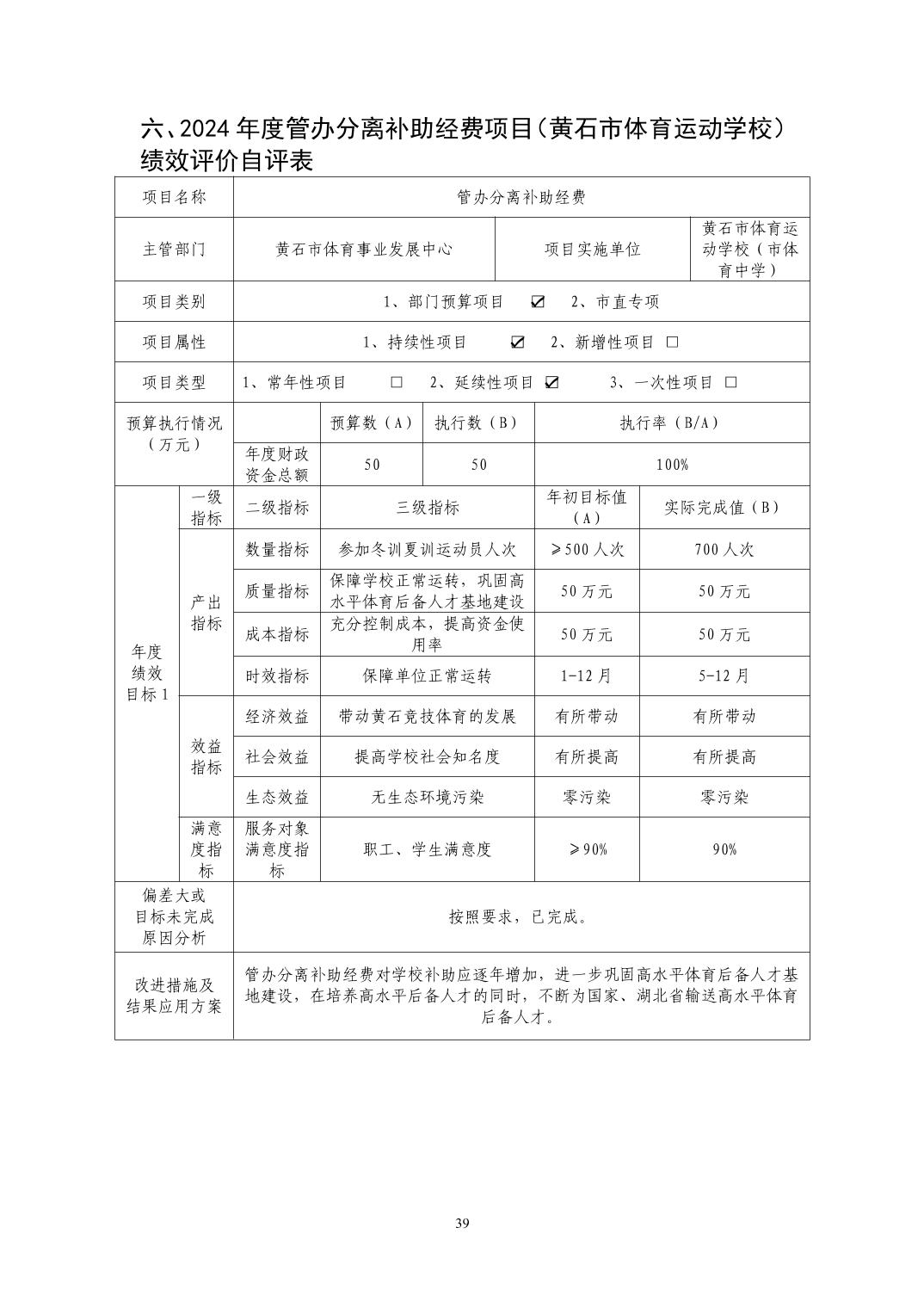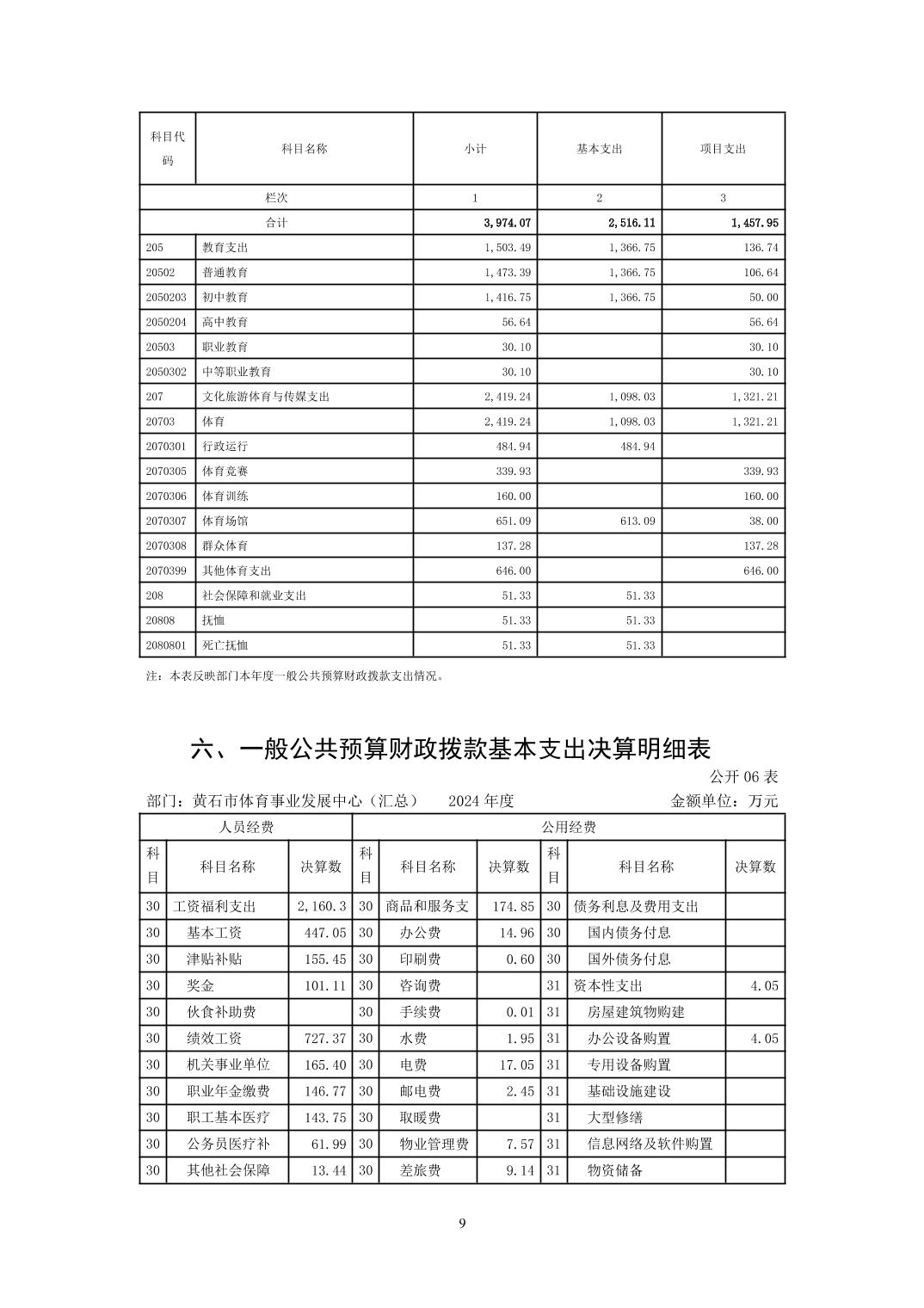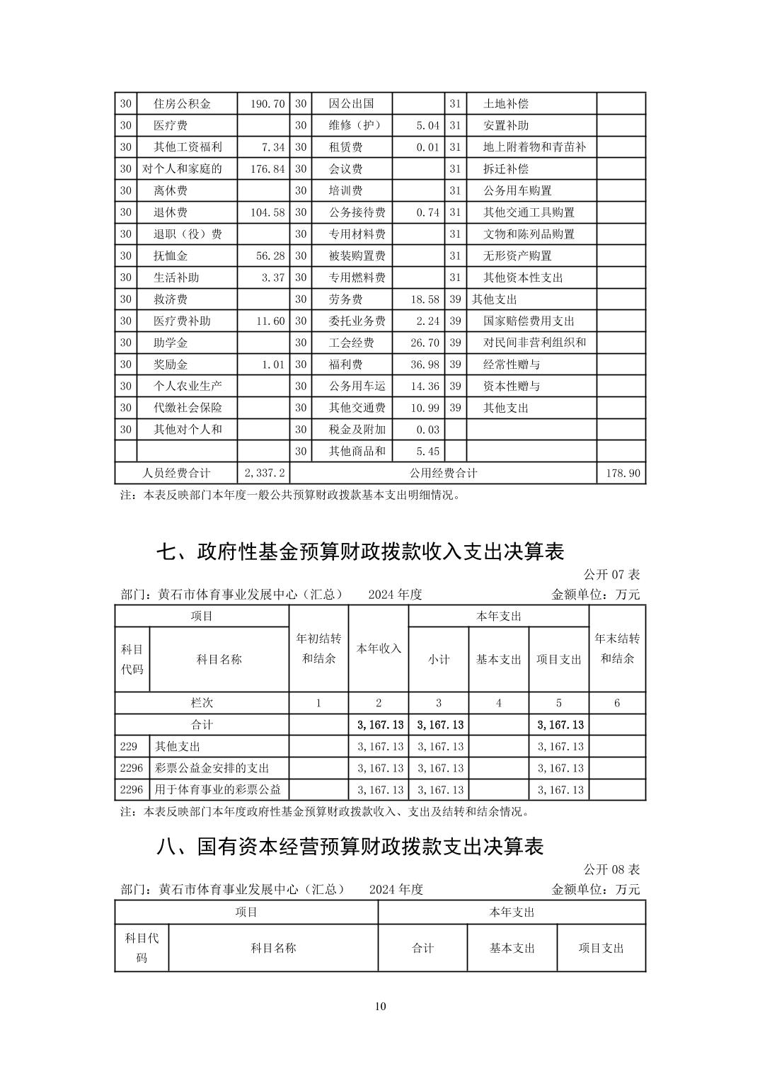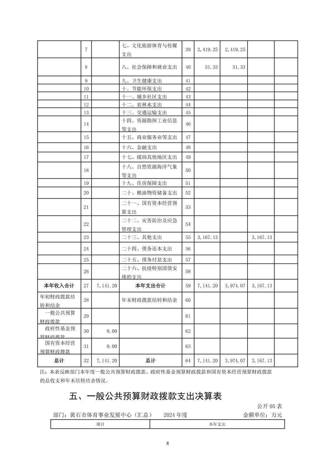 黄石市体育事业发展中心(汇总)2024年度部门决算公开