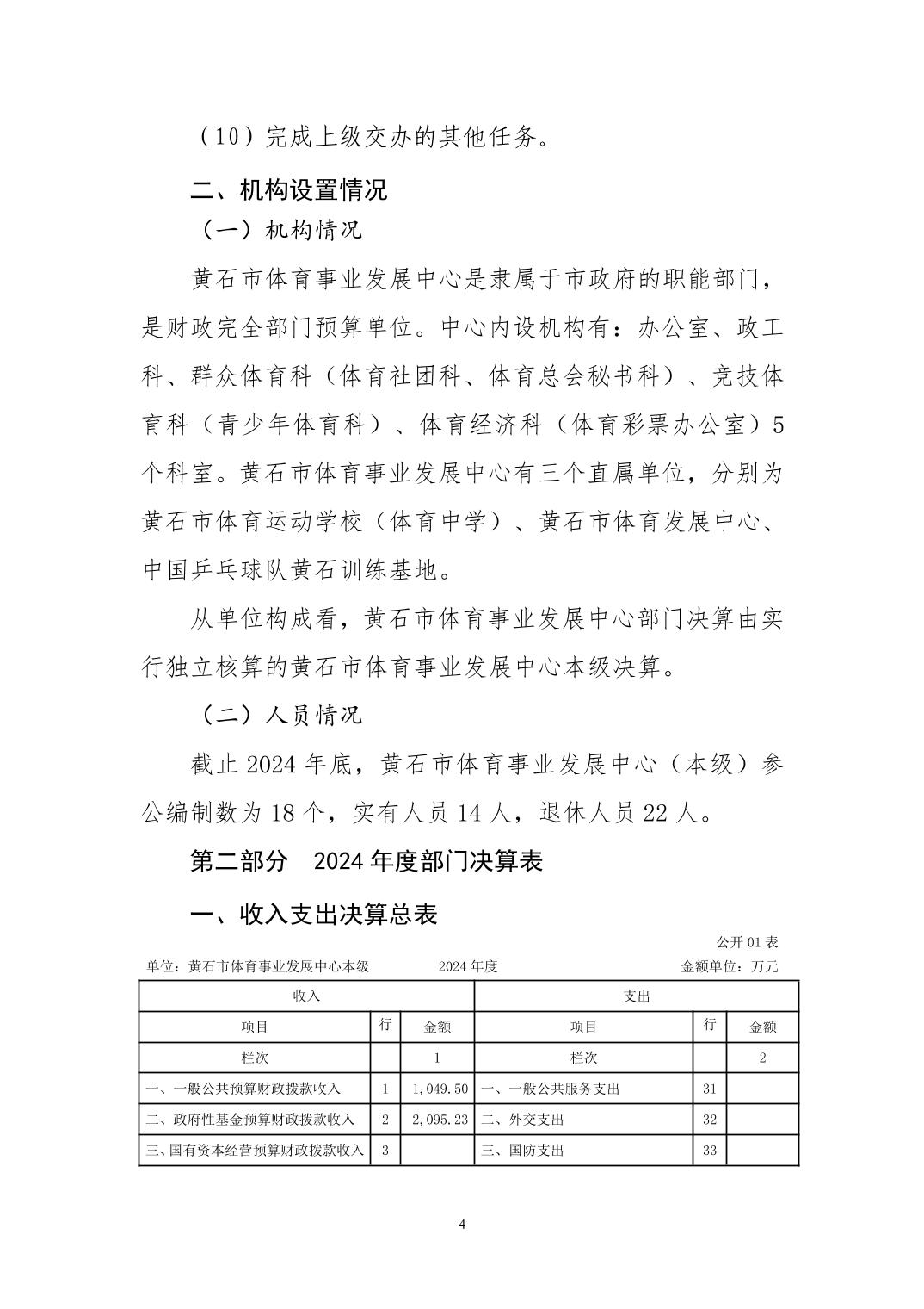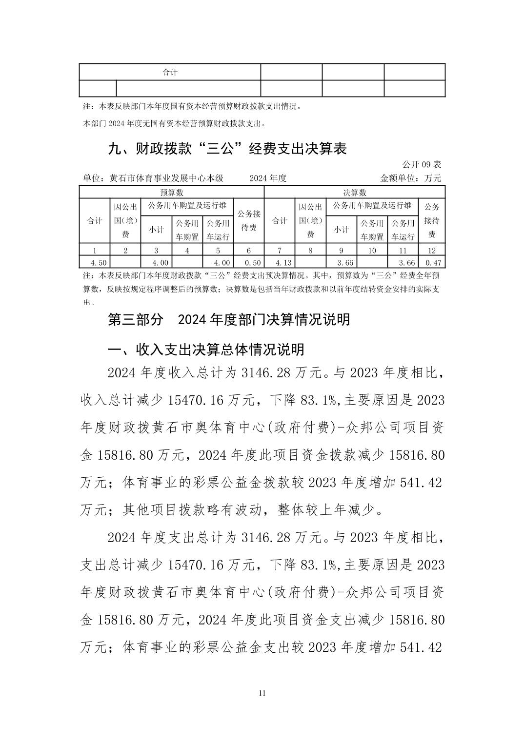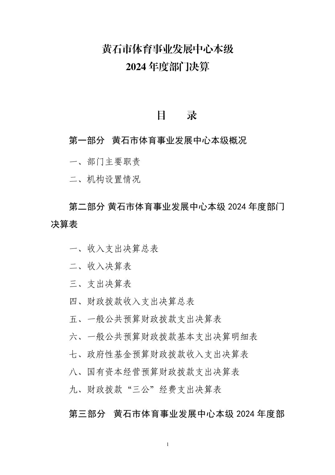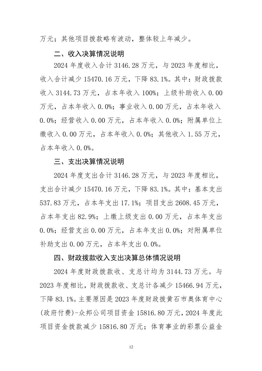 黄石市体育事业发展中心(本级)2024年度部门决算公开