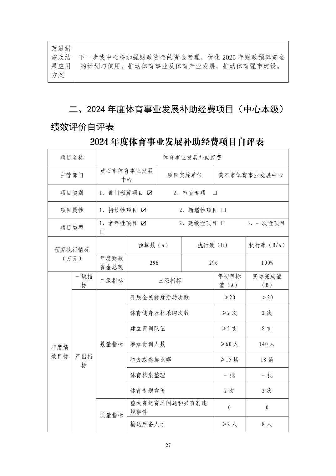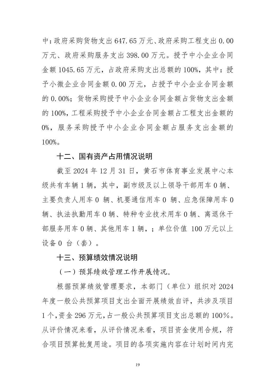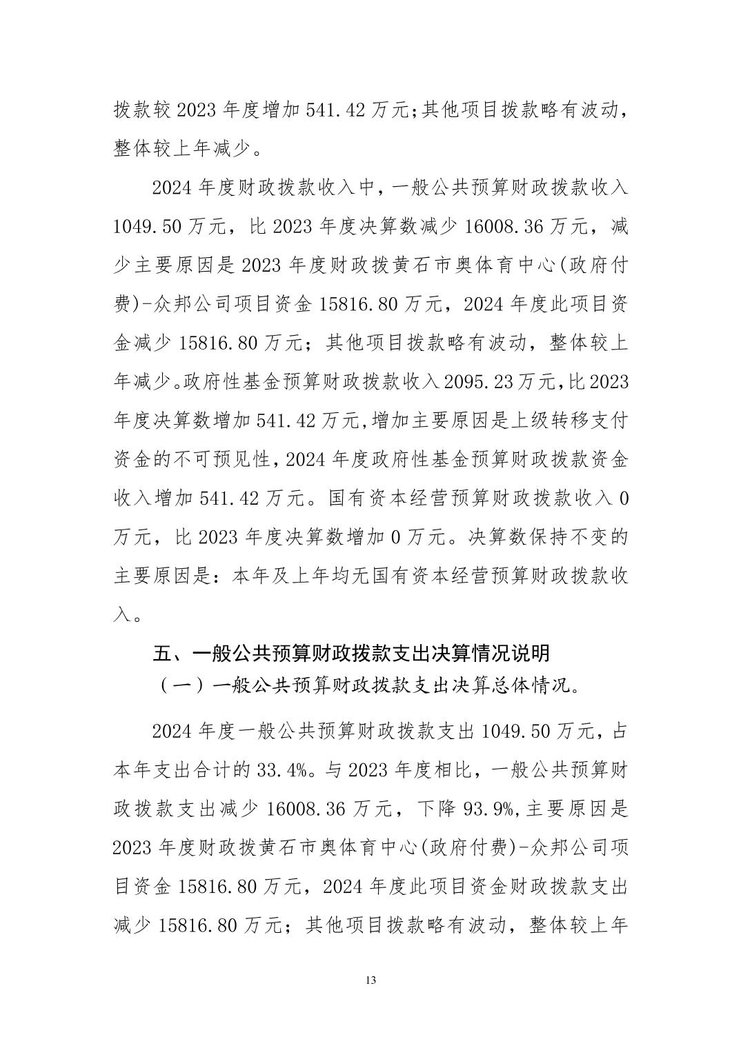 黄石市体育事业发展中心(本级)2024年度部门决算公开