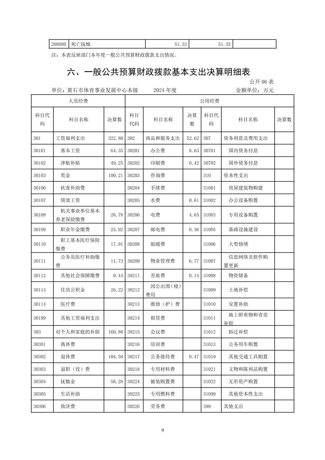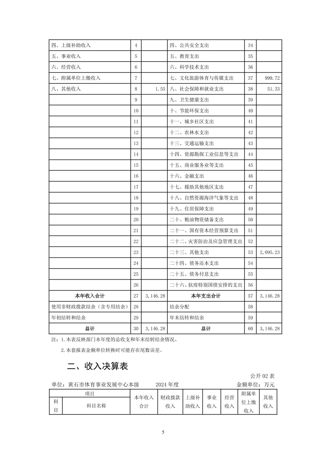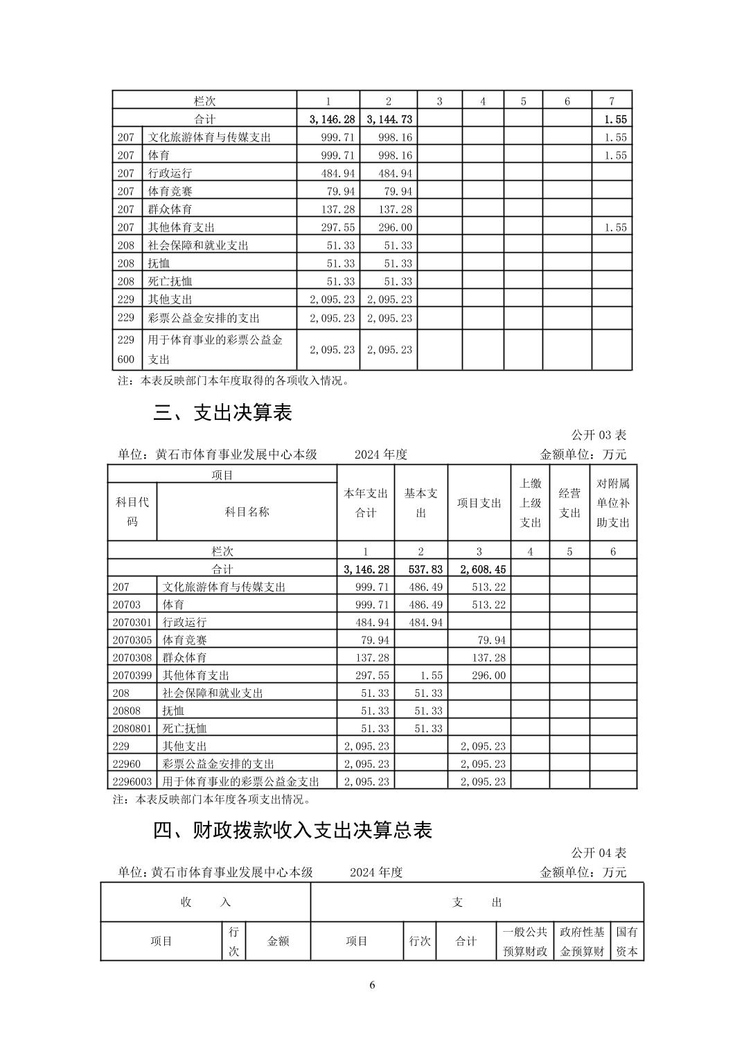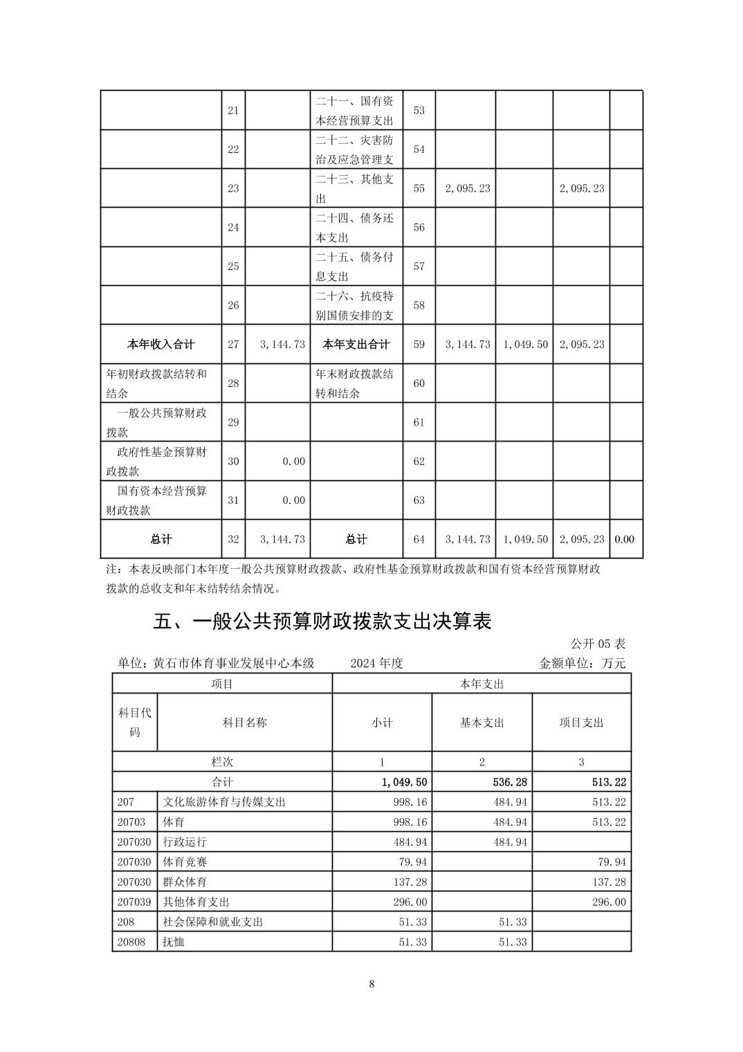 黄石市体育事业发展中心(本级)2024年度部门决算公开