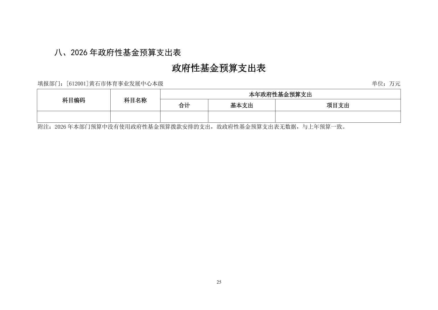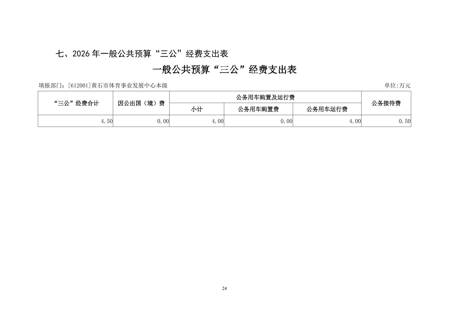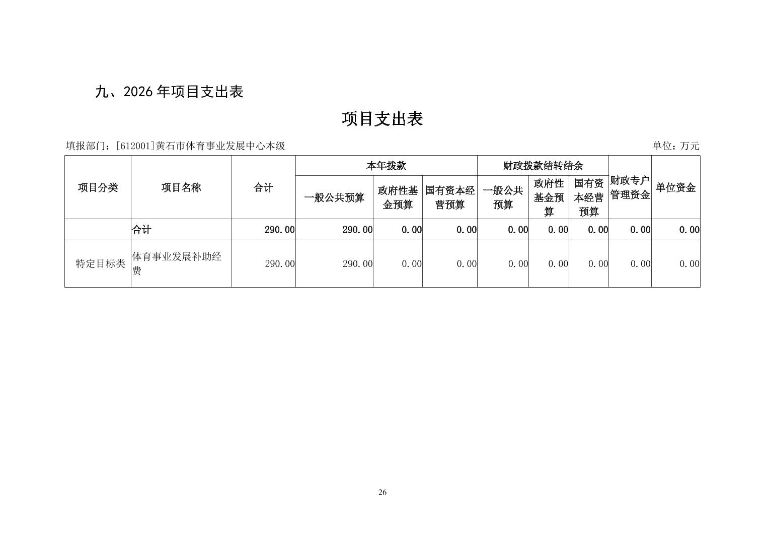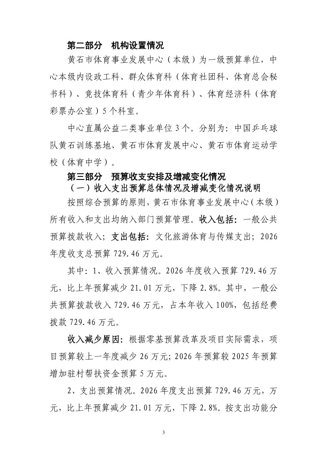 2026年度黄石市体育事业发展中心(本级) 部门预算公开情况说明