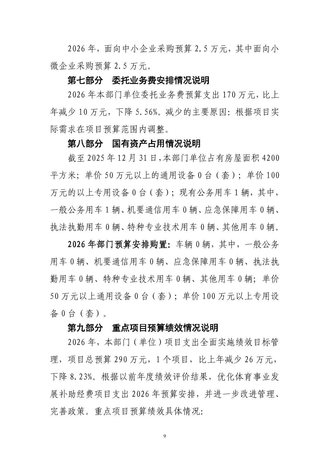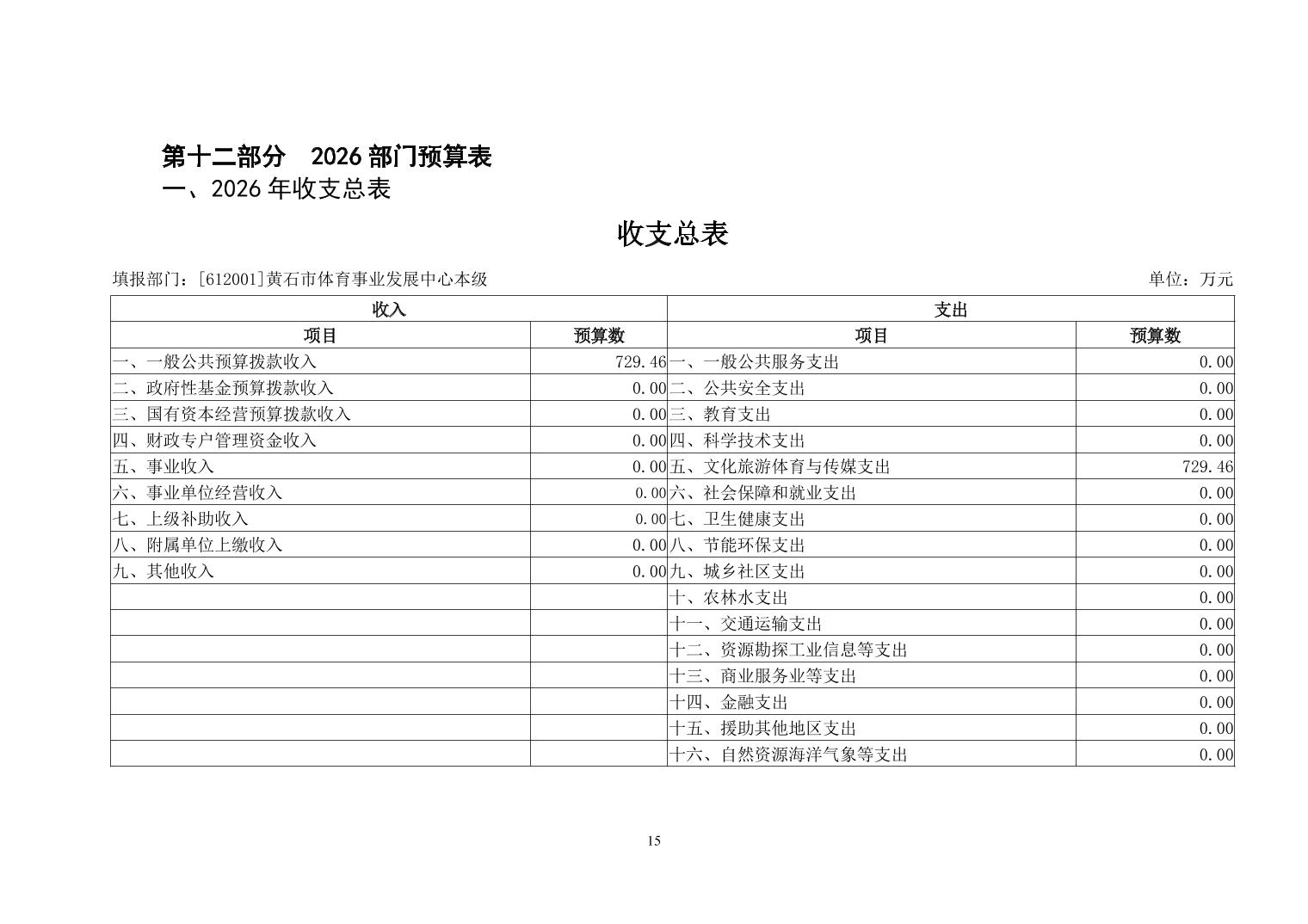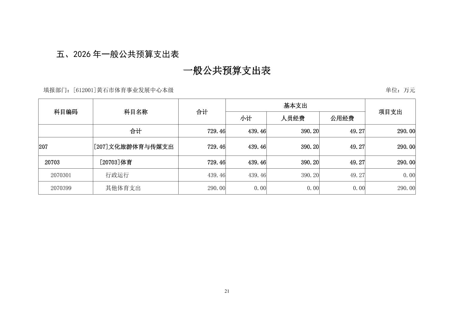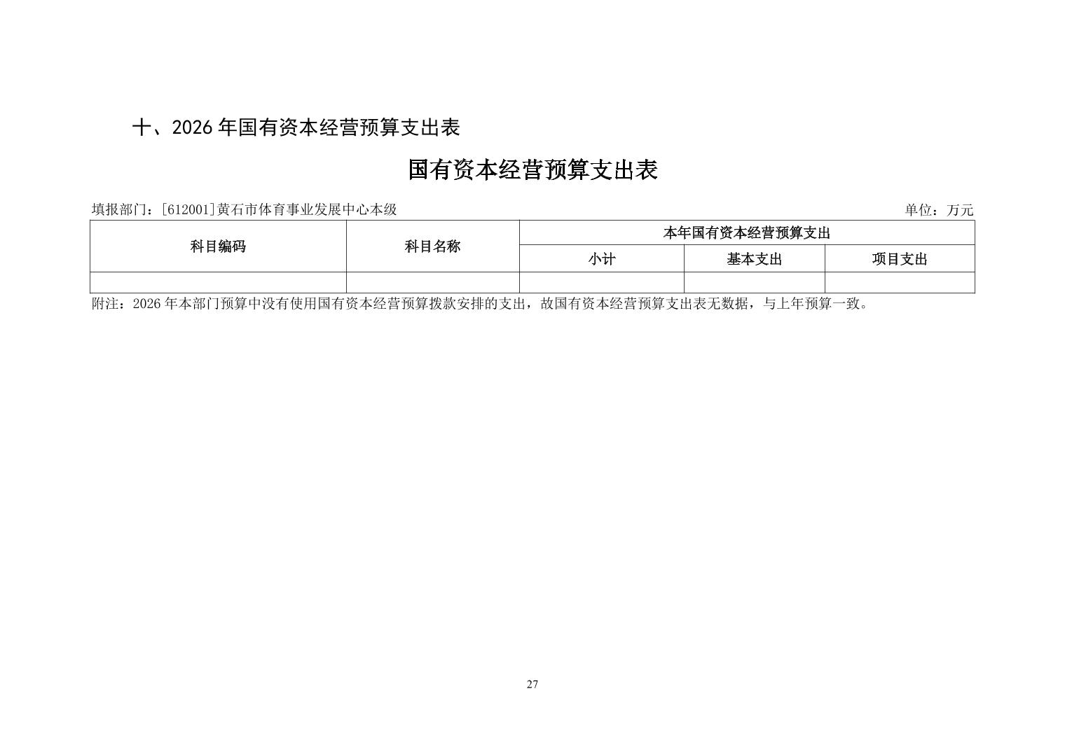 2026年度黄石市体育事业发展中心(本级) 部门预算公开情况说明