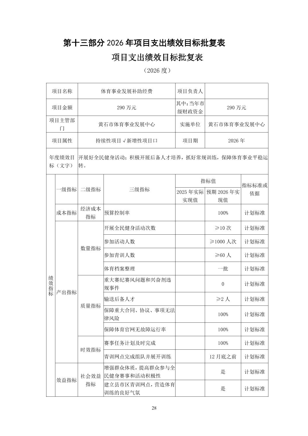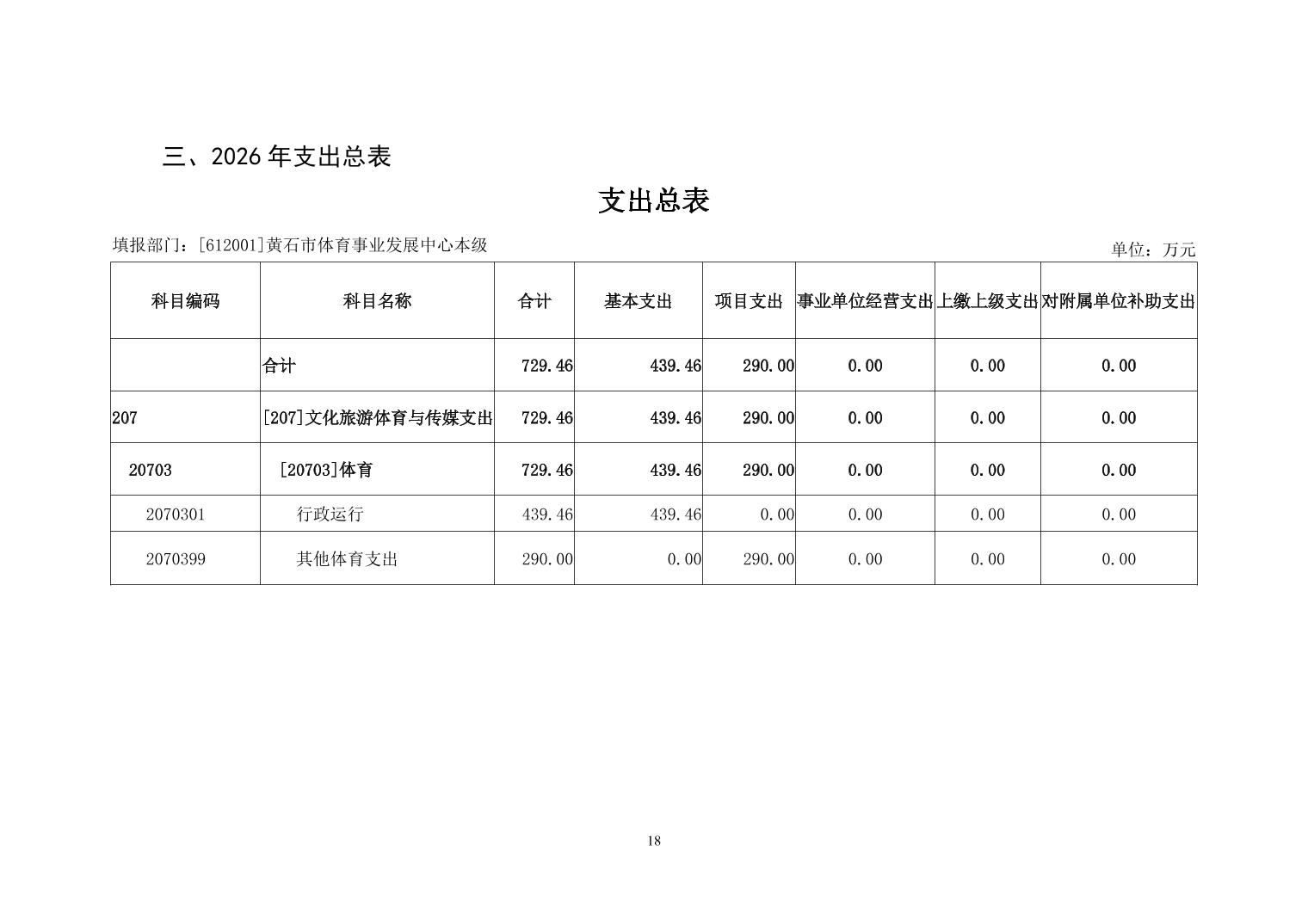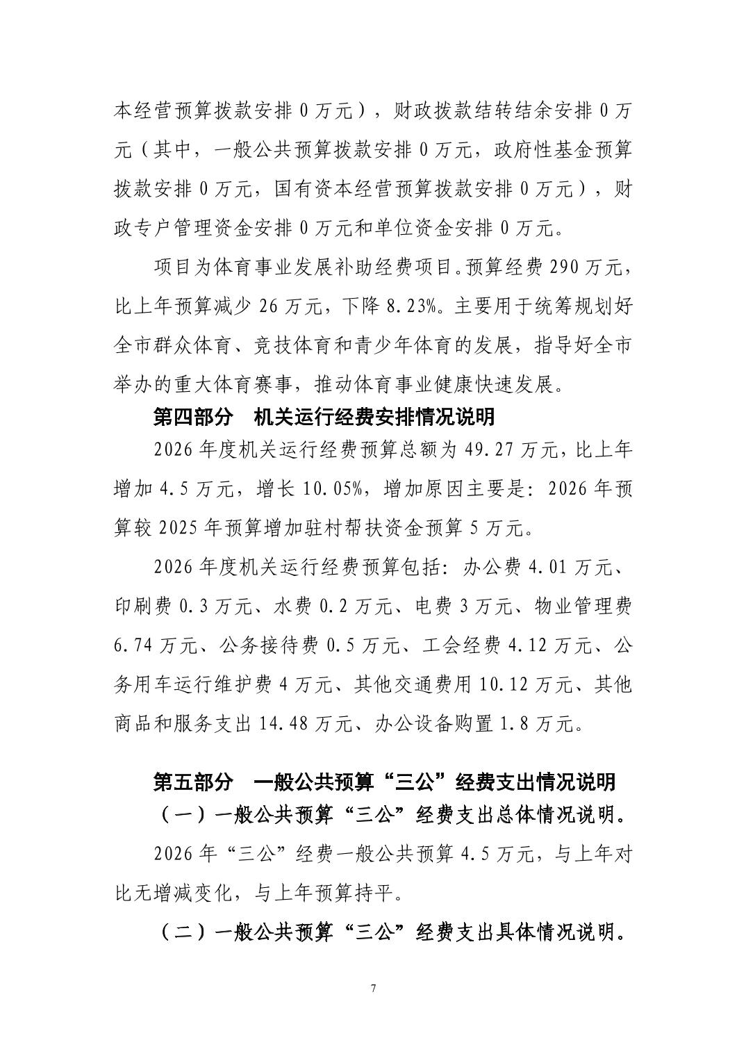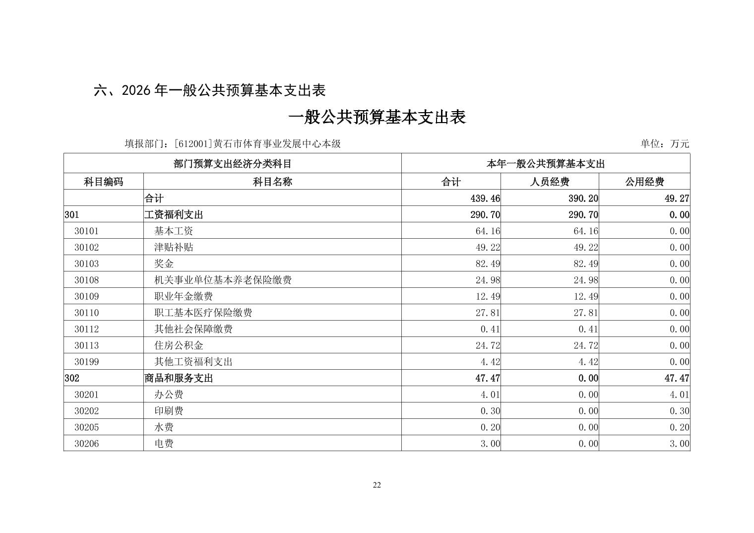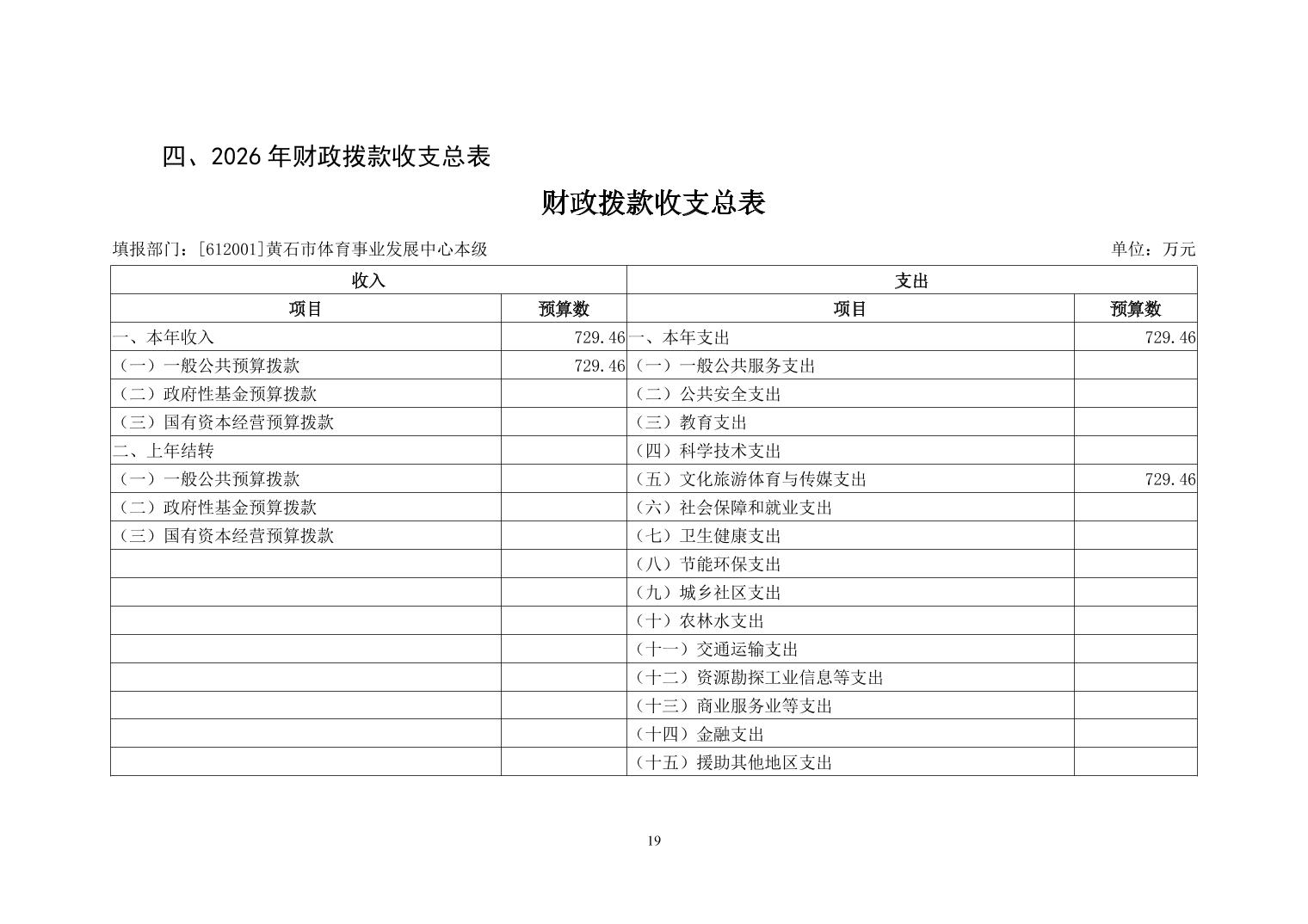 2026年度黄石市体育事业发展中心(本级) 部门预算公开情况说明