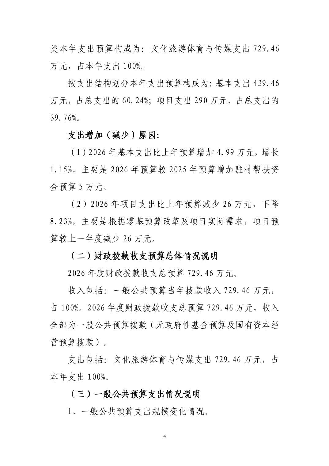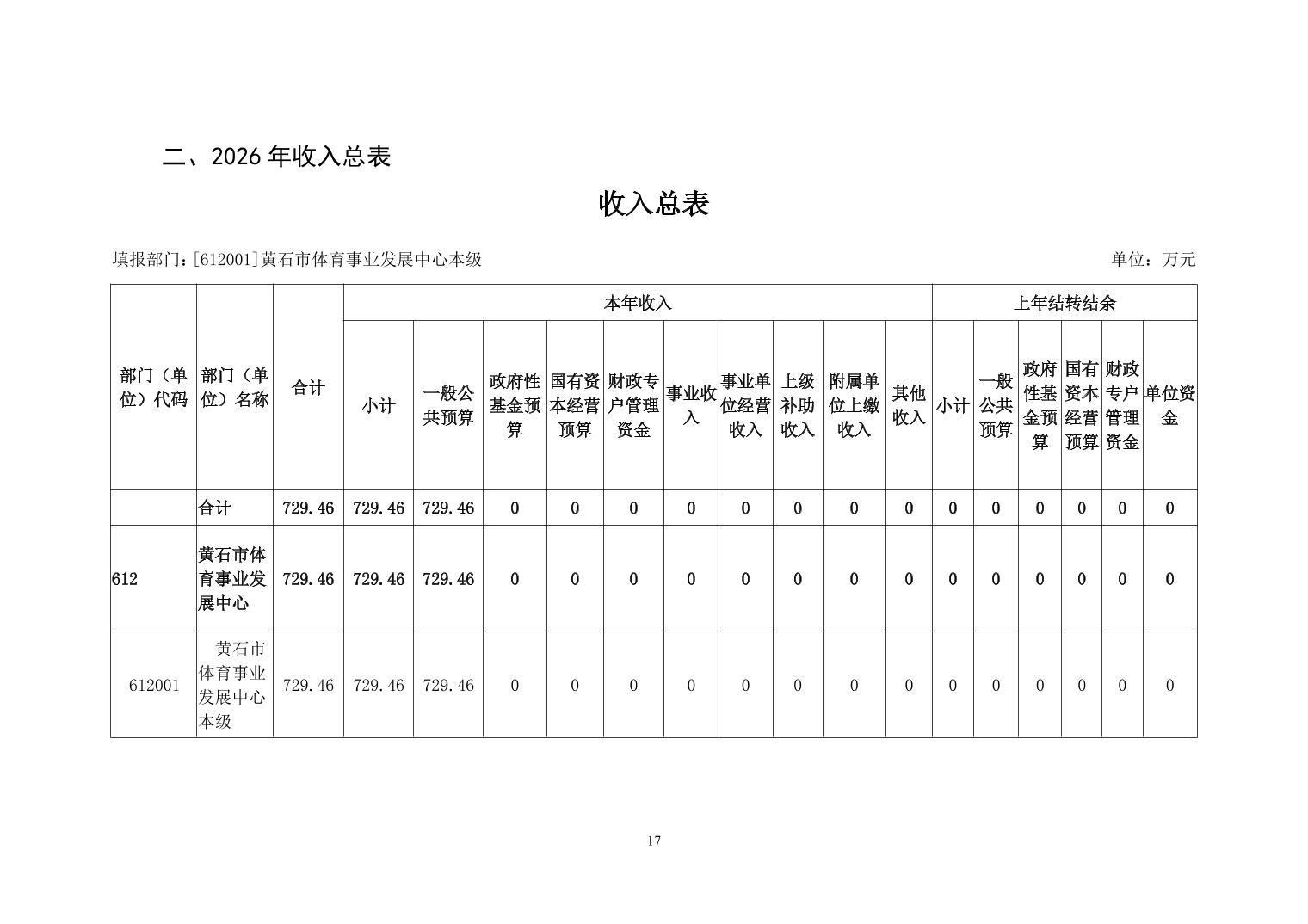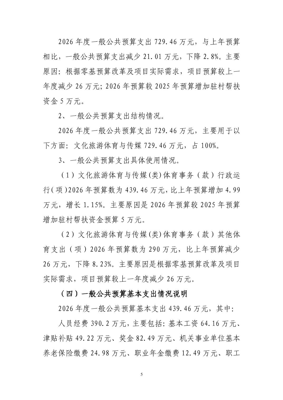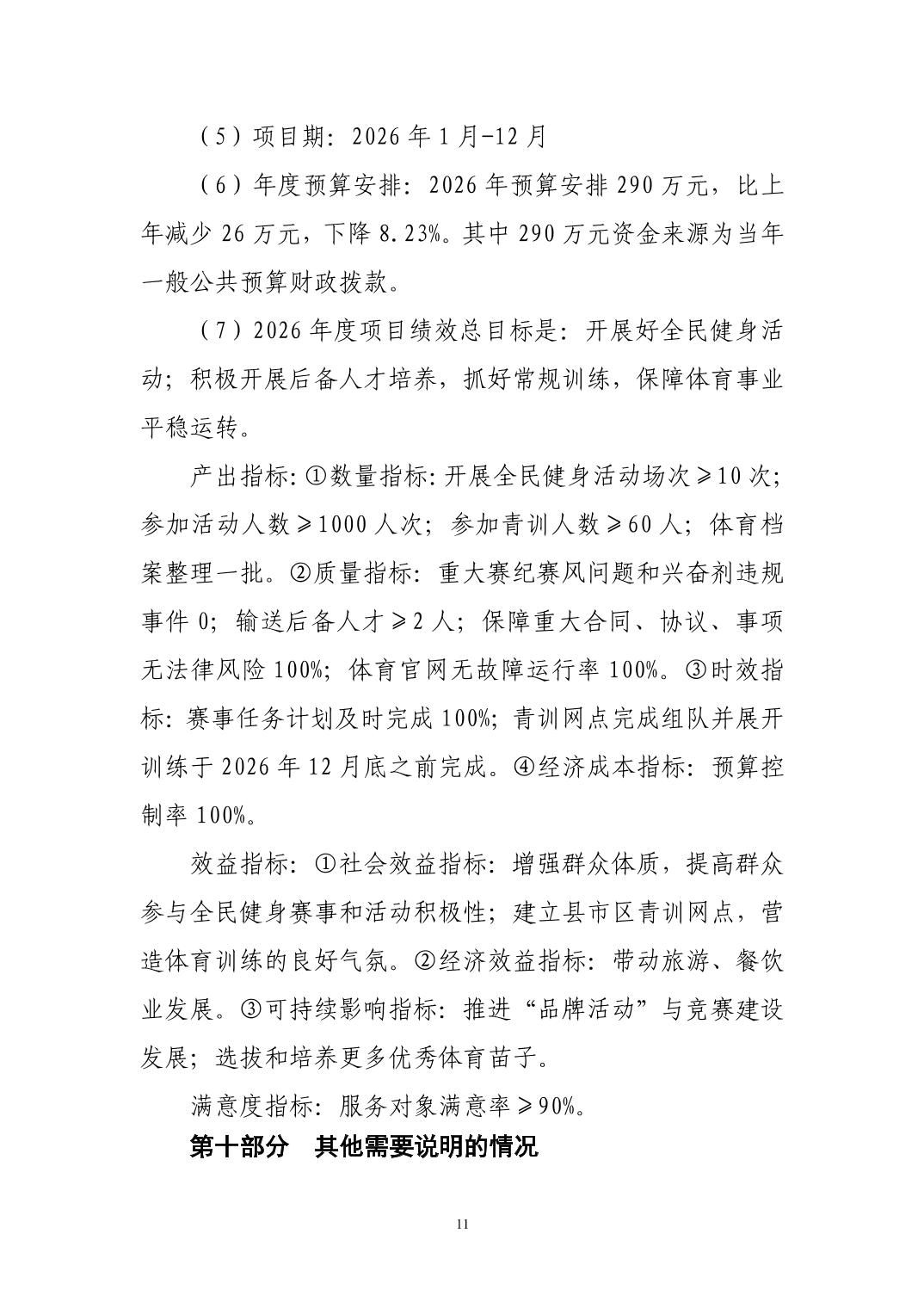 2026年度黄石市体育事业发展中心(本级) 部门预算公开情况说明