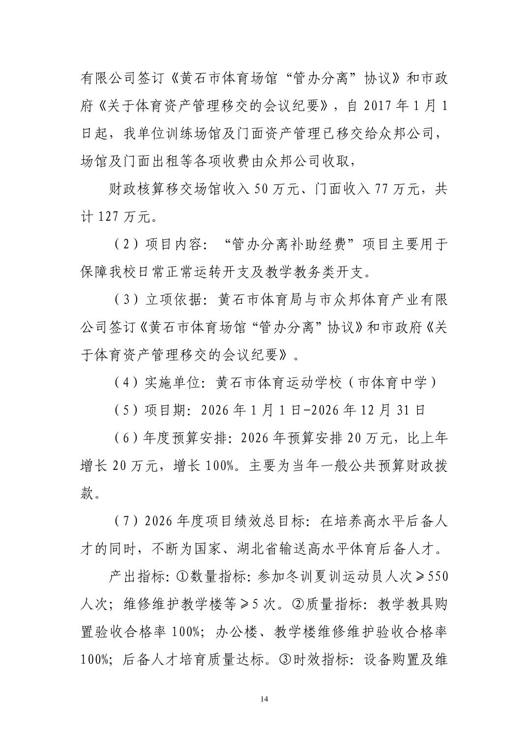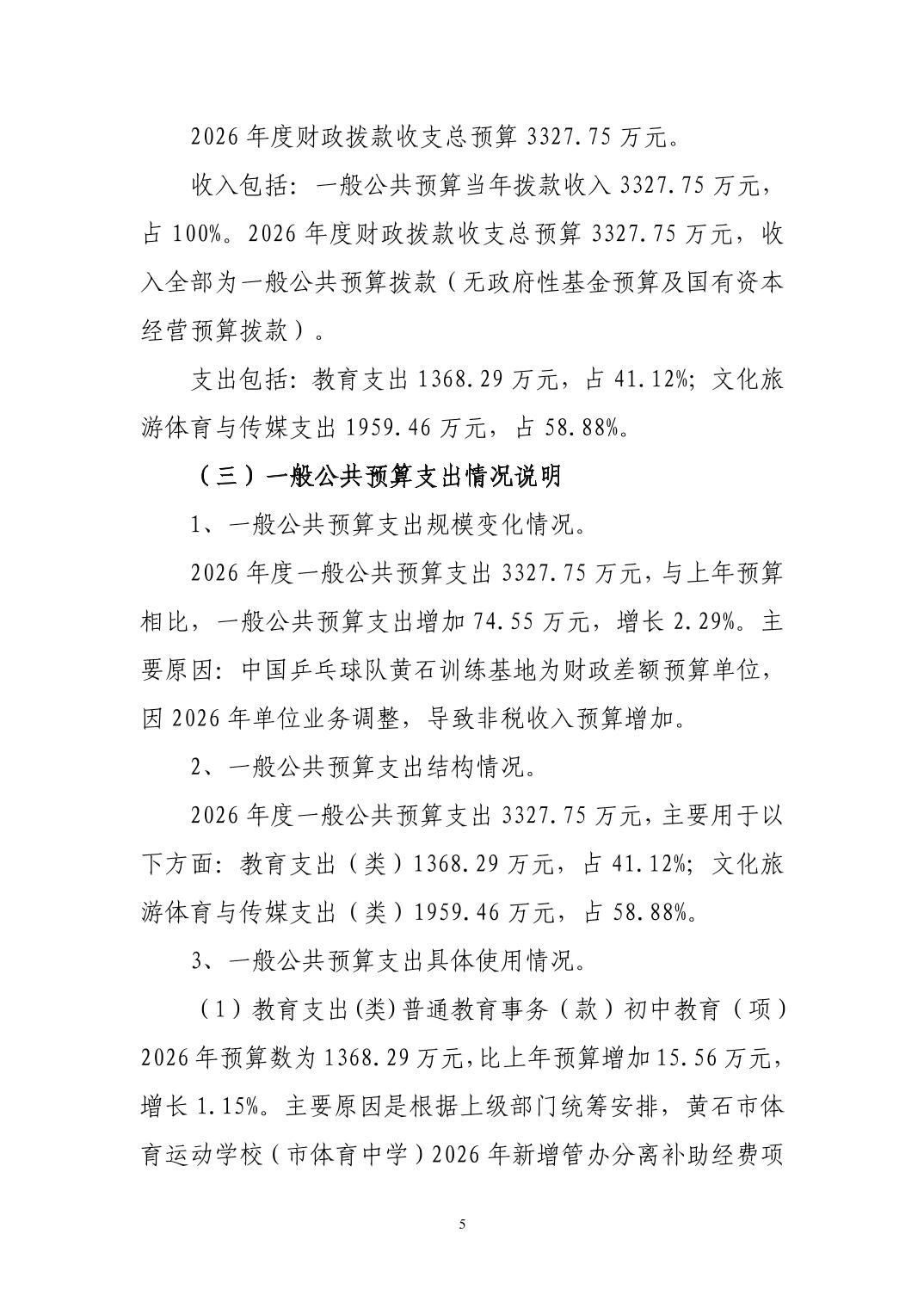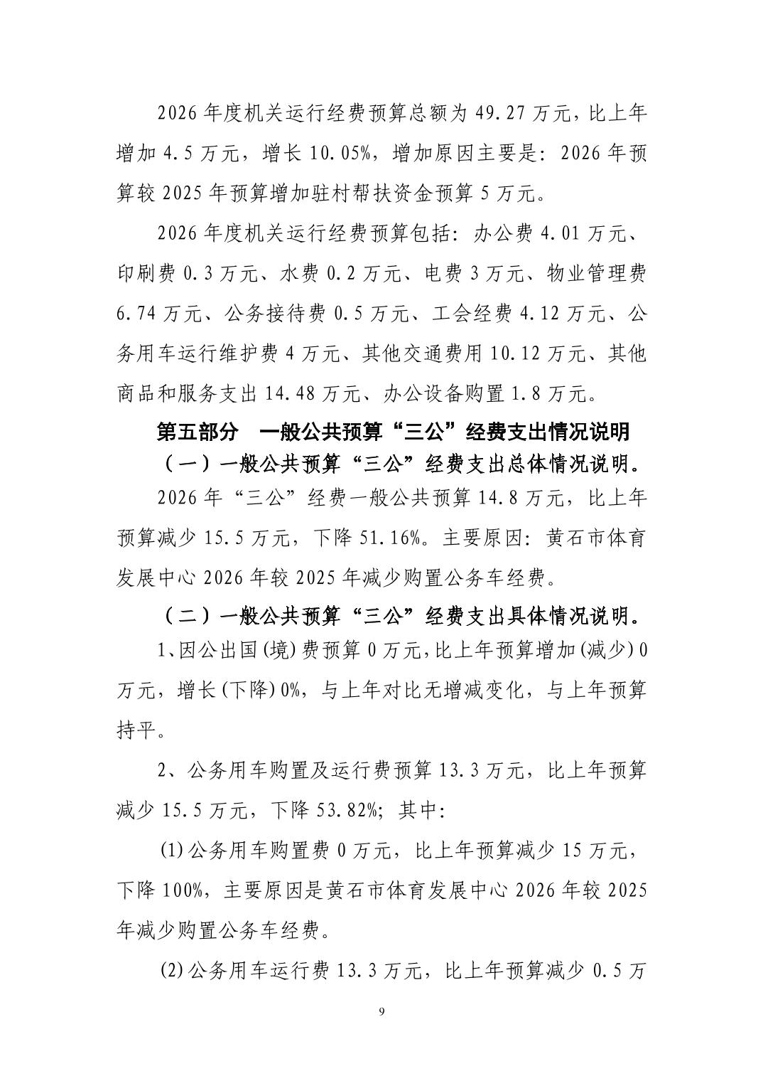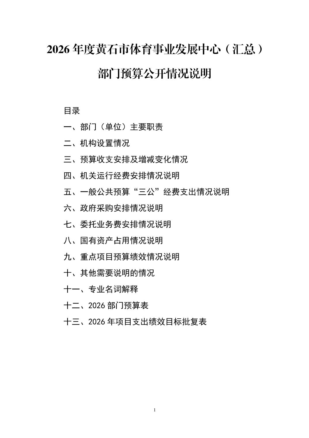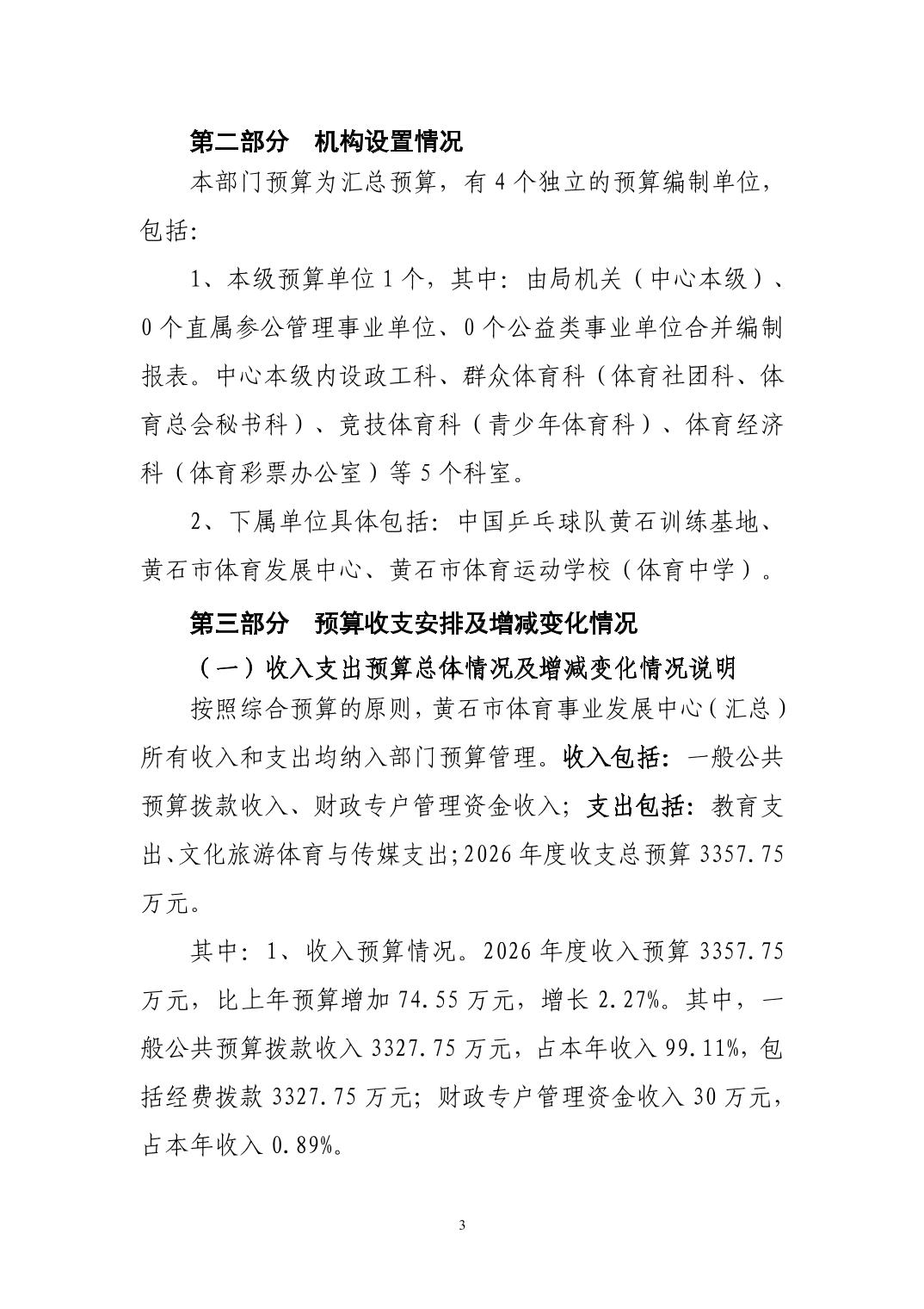 2026年度黄石市体育事业发展中心(汇总) 部门预算公开情况说明