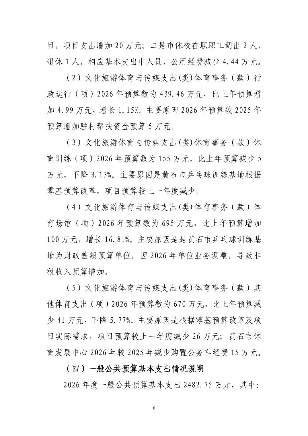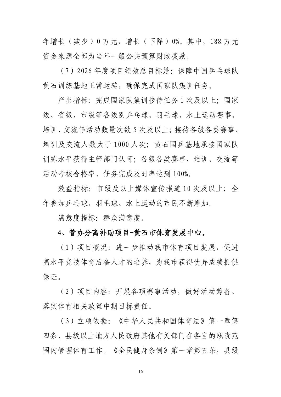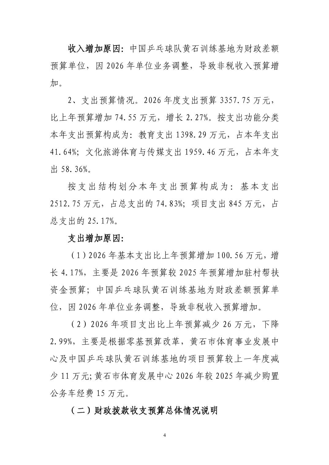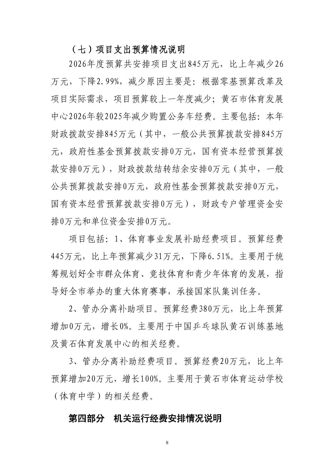 2026年度黄石市体育事业发展中心(汇总) 部门预算公开情况说明