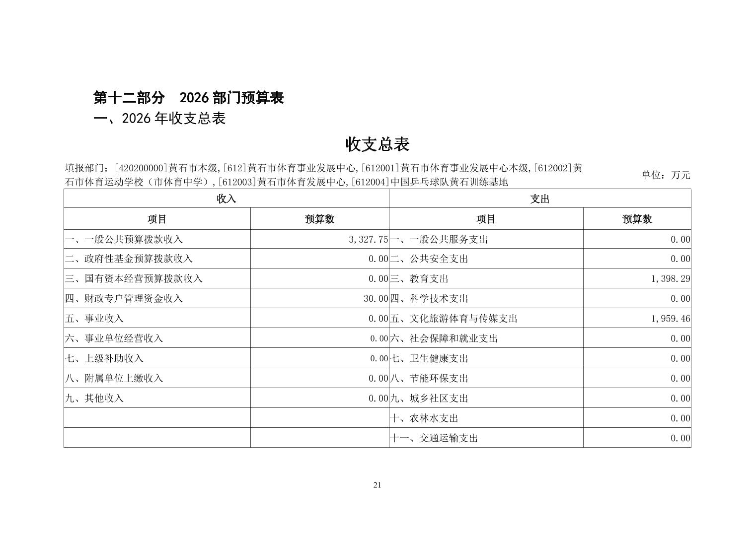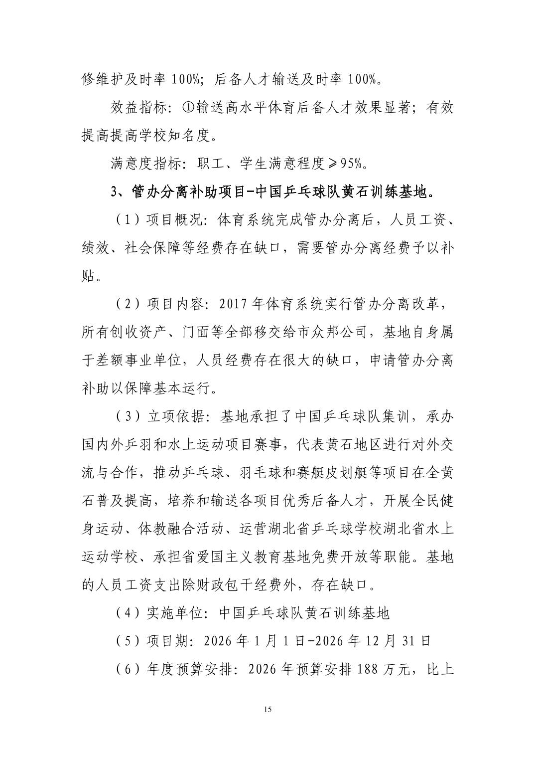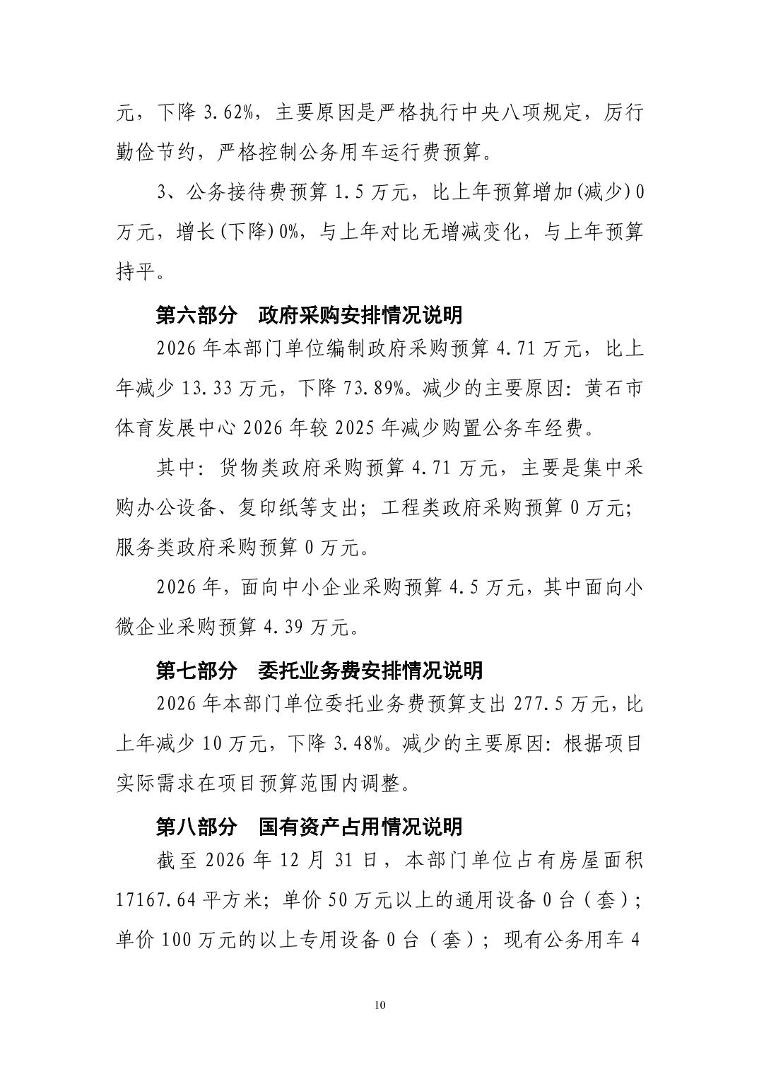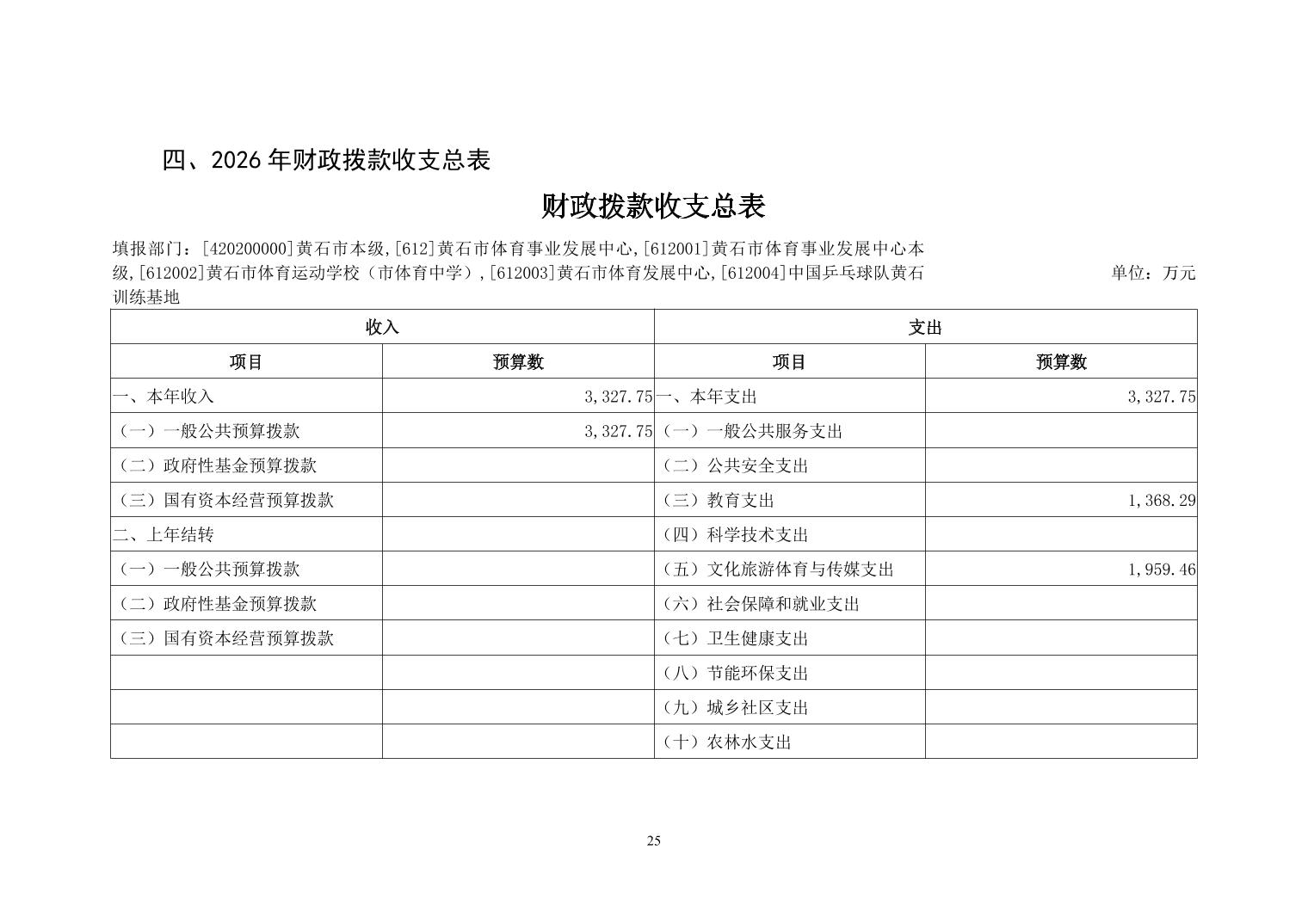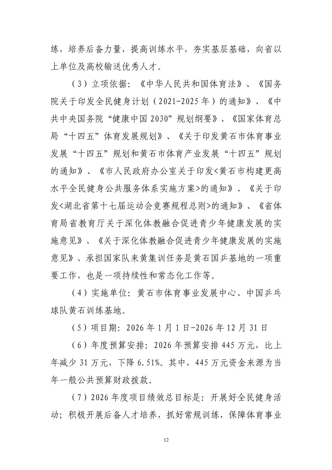 2026年度黄石市体育事业发展中心(汇总) 部门预算公开情况说明