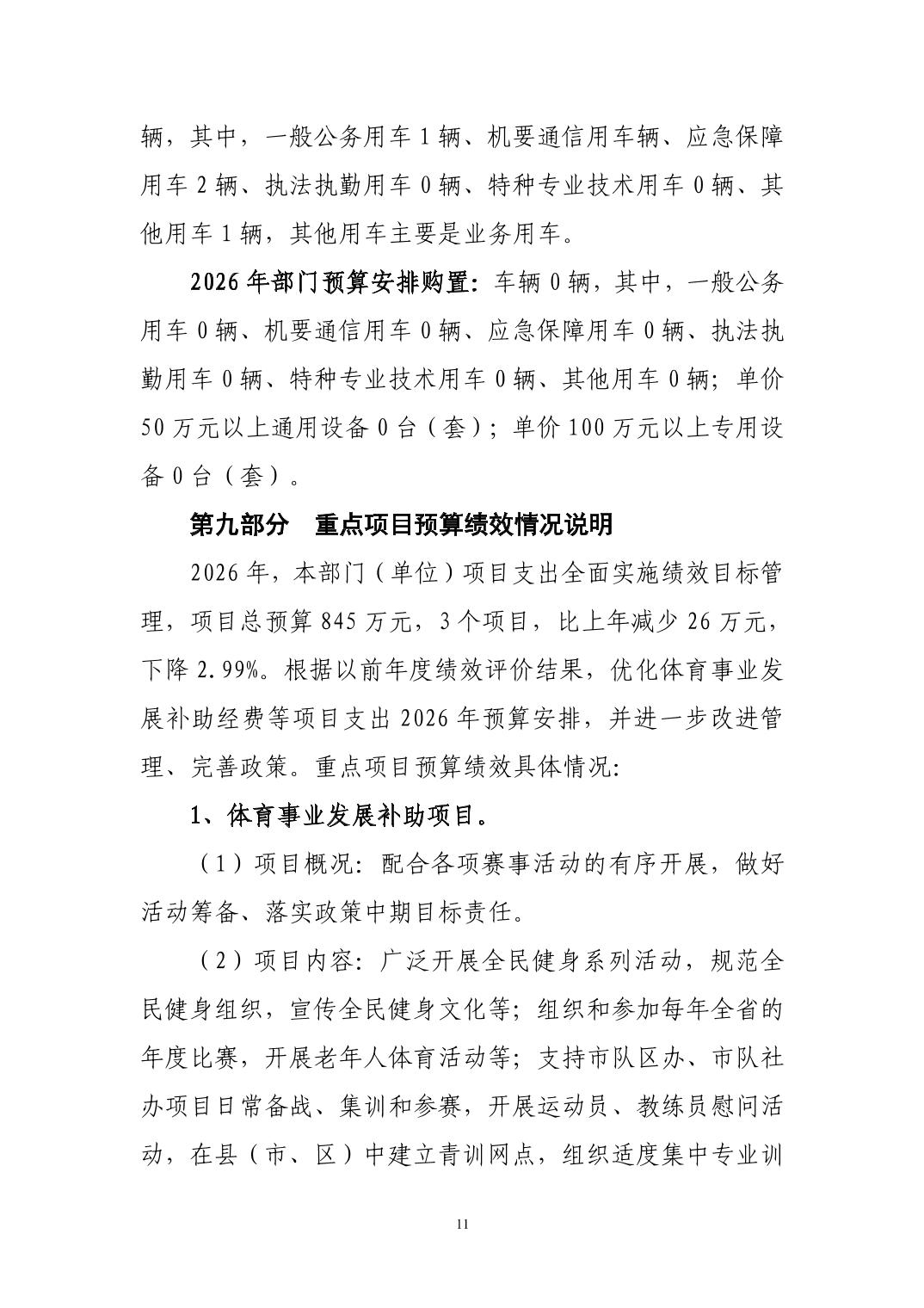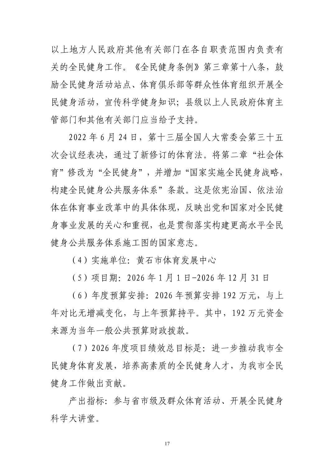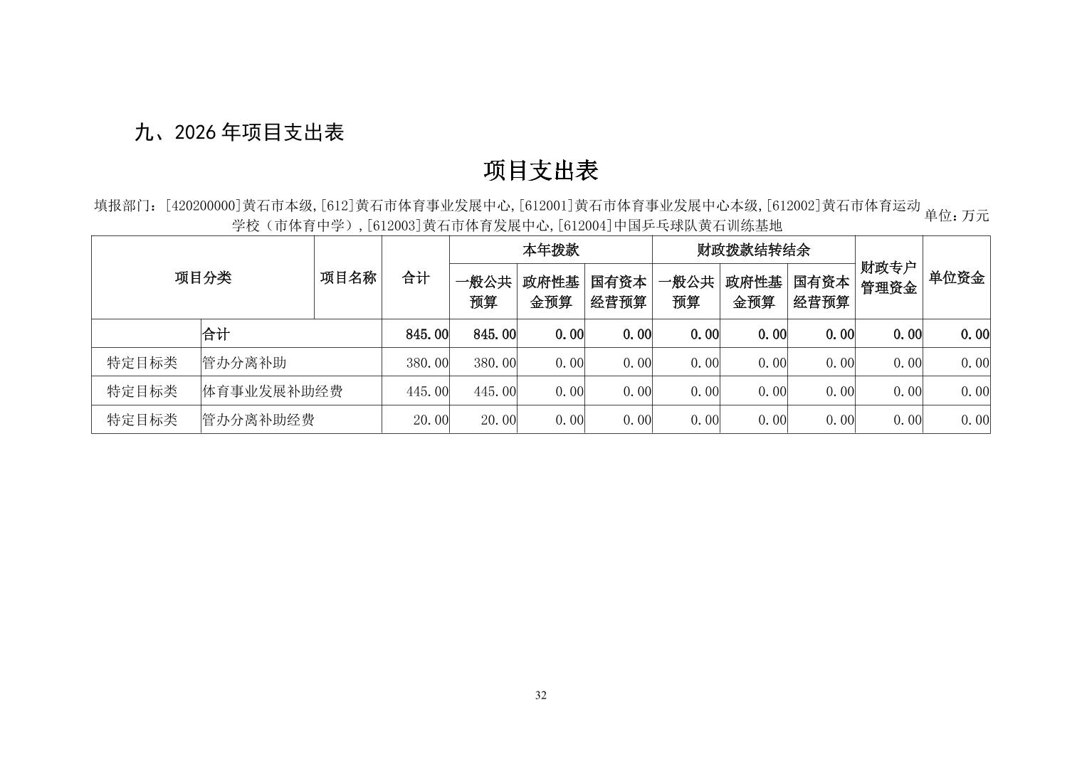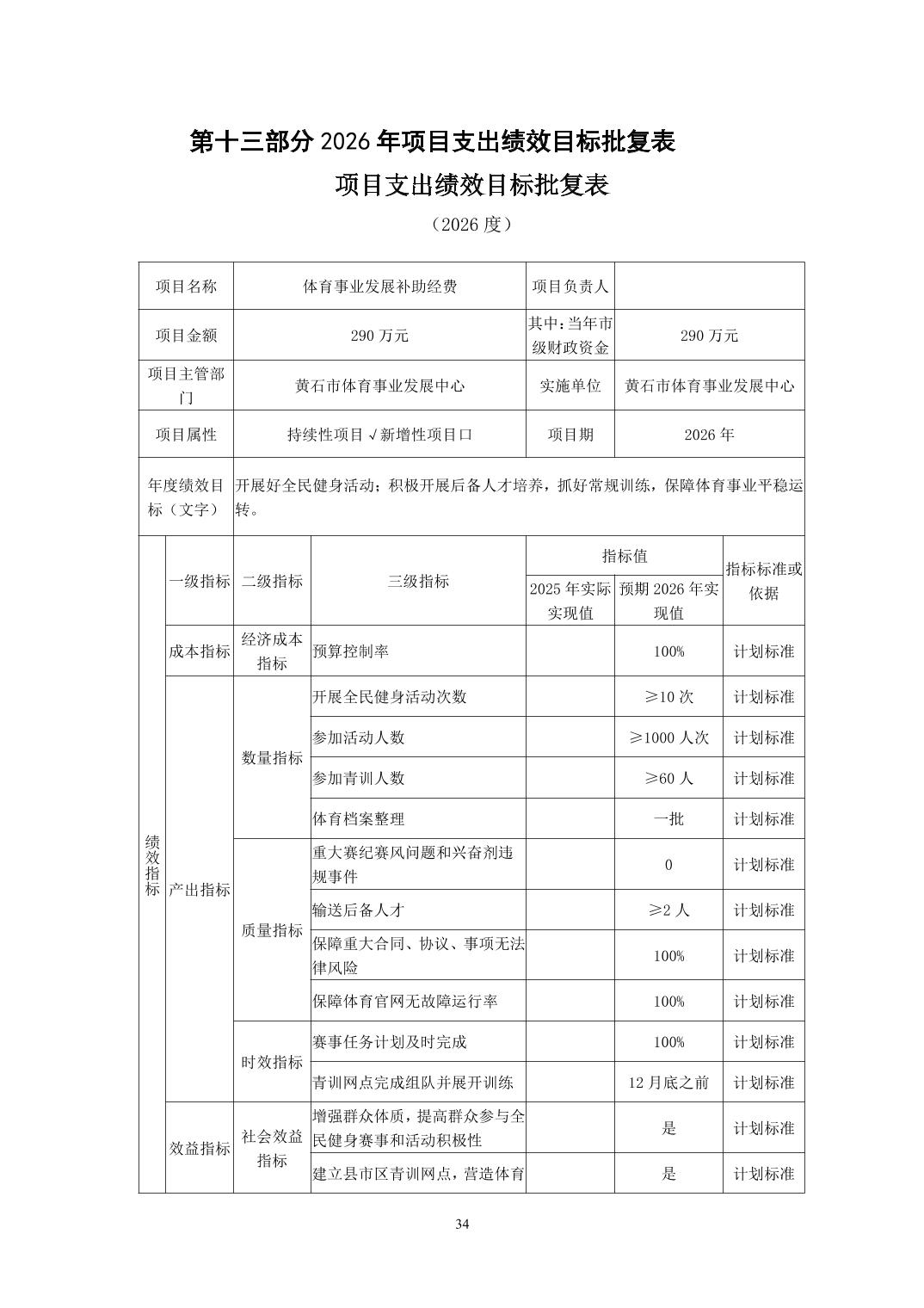 2026年度黄石市体育事业发展中心(汇总) 部门预算公开情况说明