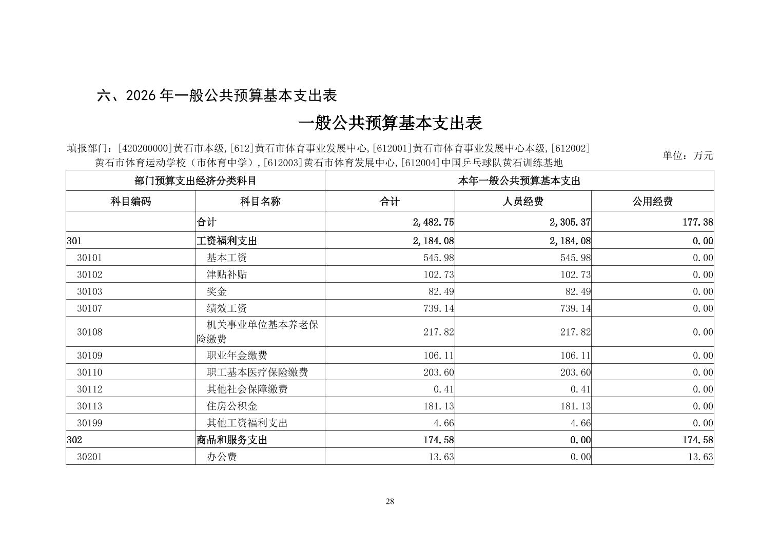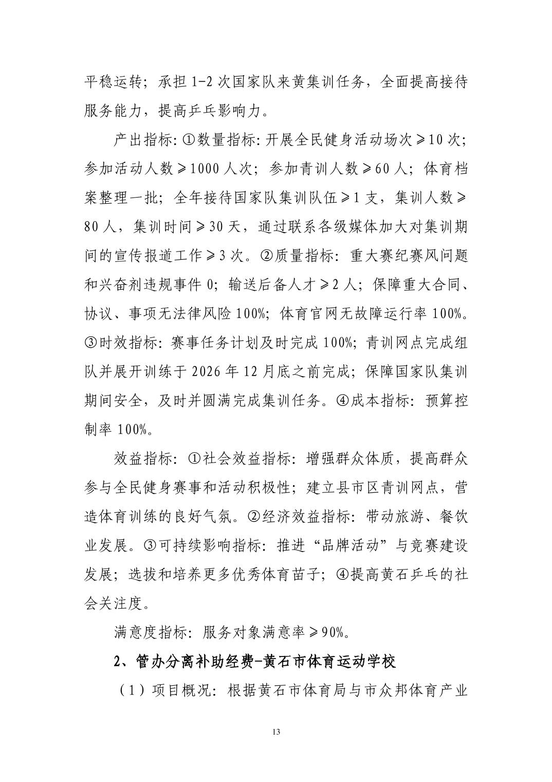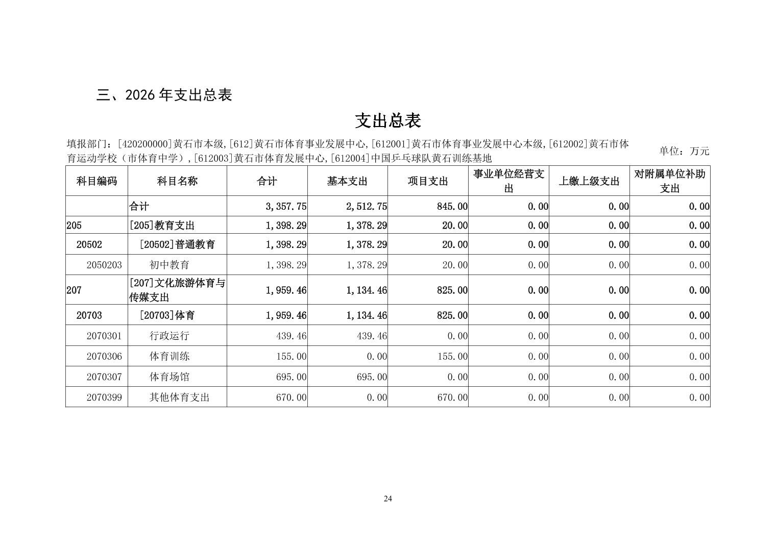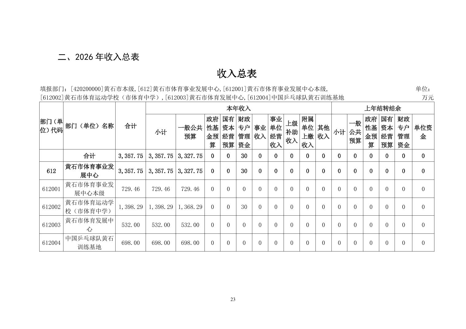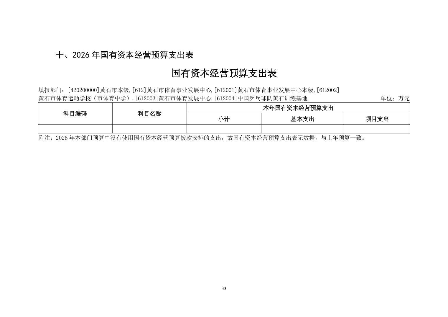 2026年度黄石市体育事业发展中心(汇总) 部门预算公开情况说明