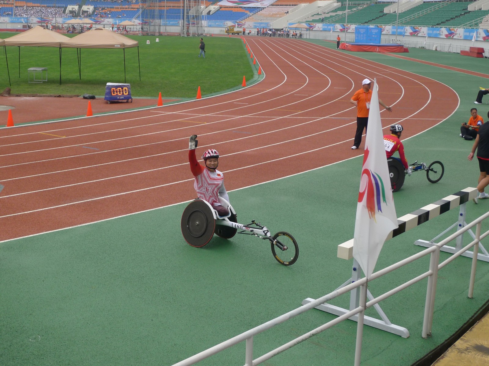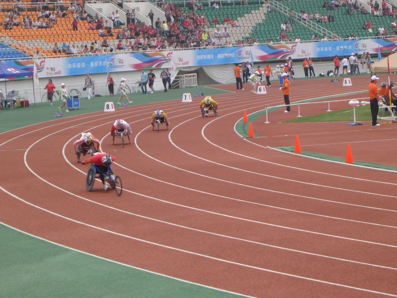 第九届全国残运会暨第六届特奥会于9月19日在成都落下大幕。经过8天的激烈角逐,赛前在黄集训的各省轮椅竞速项目代表队分别在此次大赛T54级、T53级上取得优异成绩,其中湖北队获3金、2银、1铜;河北队9金、6银、7铜;云南队1银、1铜;陕西队2金、1银、6铜(代云强在男子T54级400米决赛中以49”27的成绩夺得冠军、顾凯翔在男子T33级200米比赛中以51”43的成绩获得冠军)。运动员们用自己惊人的毅力克服了重重困难,实现了轮椅竞速项目金牌零的突破。