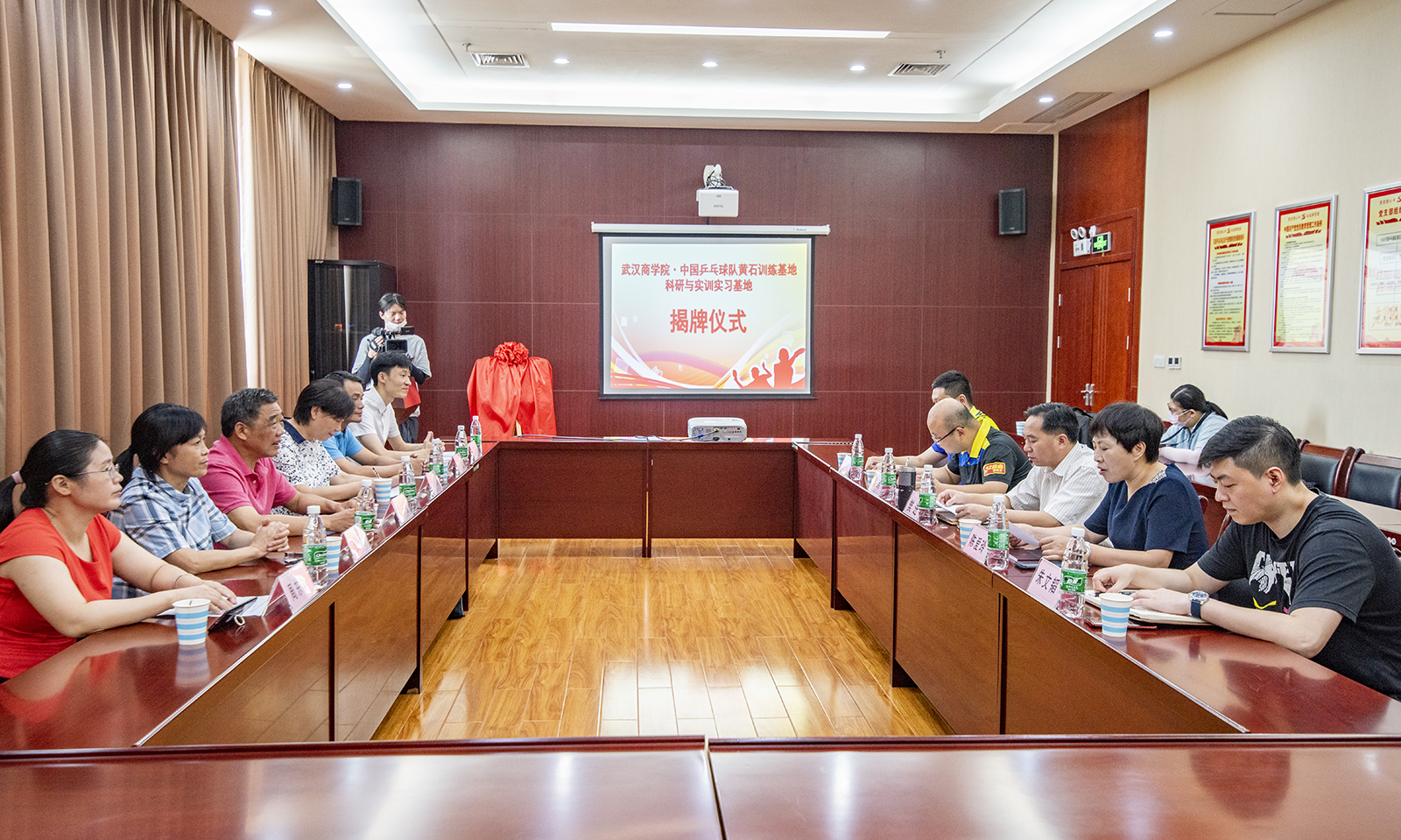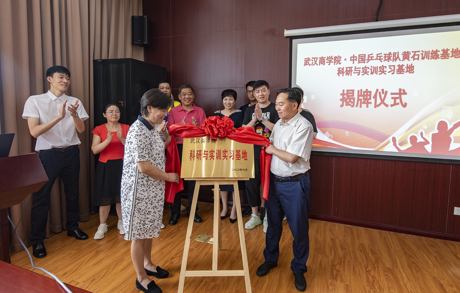 9月4日,武汉商学院科研与实训实习基地在黄石国乒基地正式挂牌,拉开了双方资源共享、互利促进、合作共赢的序幕。武汉商学院体育学院·国际马术学院党总支书记周晓洁与黄石市体育事业发展中心樊进主任一起为科研与实训实习基地揭牌。