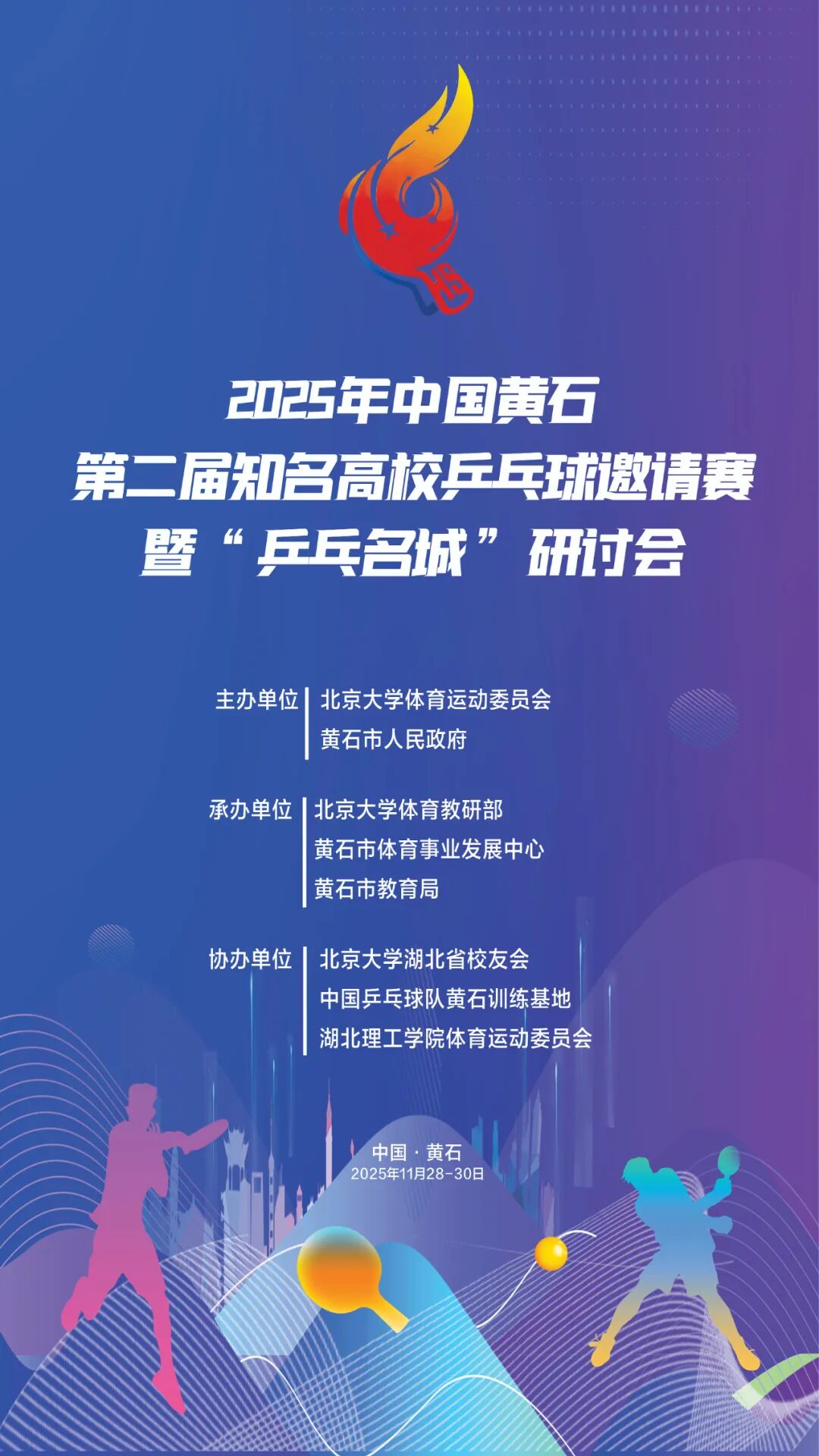 此次活动将为高校乒乓球选手提供展示风采的舞台,以乒乓球为纽带,进一步推动体育与教育、文化、旅游等产业深度融合,持续擦亮黄石“乒乓名城”的名片。