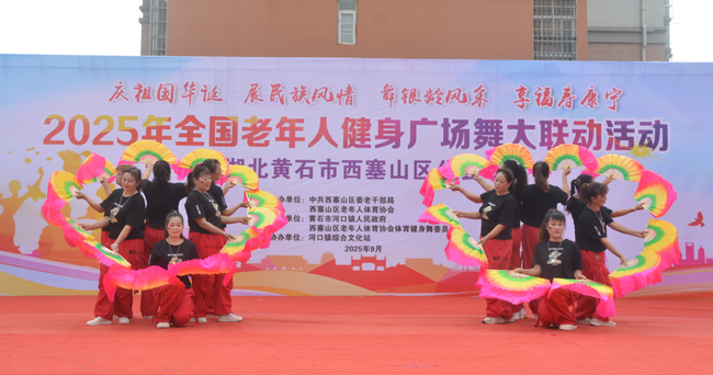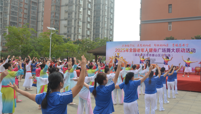 庆祖国华诞、展民族风情、舞银龄风采、享福寿康宁。9月28日,由中共西塞山区委老干部局、西塞山区老年人体育协会共同主办,黄石市河口镇人民政府、西塞山区老年人体育协会体育健身舞委员会联合承办的2025年全国老年人健身广场舞大联动湖北黄石市西塞山区分会场展演活动在西塞山工业园区(河口镇)芙蓉园小区文体广场举行。