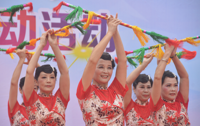 活动现场,15支健身广场舞代表队的220余名中老年朋友,身着盛装,集体展演的《再唱山歌给党听》拉开本次展演活动的帷幕,他们欢快的舞步点燃了现场观众的热情,赢得现场观众的阵阵掌声和喝彩声。随后,《五星红旗》《太阳出来喜洋洋》《爱我中华》等脍炙人口的歌曲以鼓舞、伞舞、扇子舞等多种多样的形式纷纷亮相。每一段舞姿都藏着他们对祖国的深情,每一个节拍都跃动着他们对生活滚烫的热爱。展演活动营造了热烈喜庆的浓厚氛围,展示了大家积极向上的精神风貌和新时代中老年人的时尚风采。