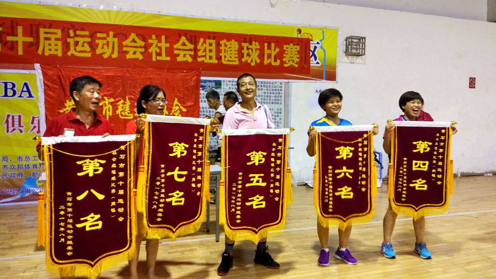 临江白龙队发球,对方一个简单回推,似乎是压力太大,临江白龙队瘦长老者一记简单地中场推球出现失误,弹到网上,三人都不及再追,这一分由中窑江滩队得到。最终,中窑江滩队夺得黄石市第十届运动会平推毽球赛冠军。