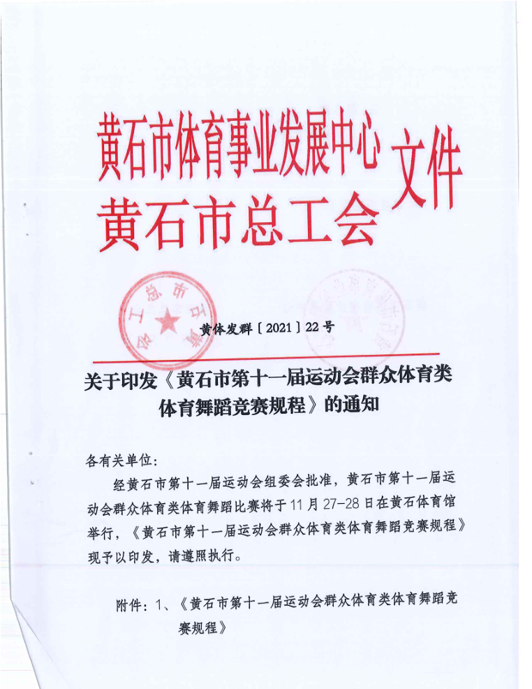 关于印发《黄石市第十一届运动会群众体育类体育舞蹈竞赛规程》的通知