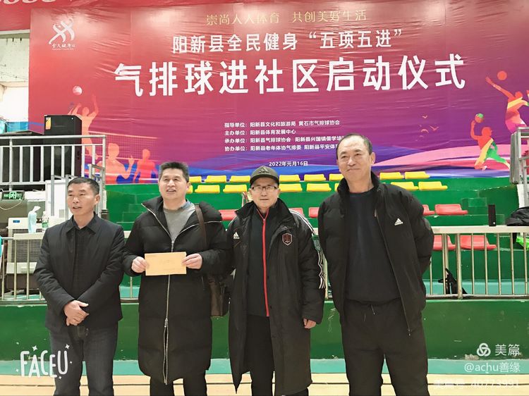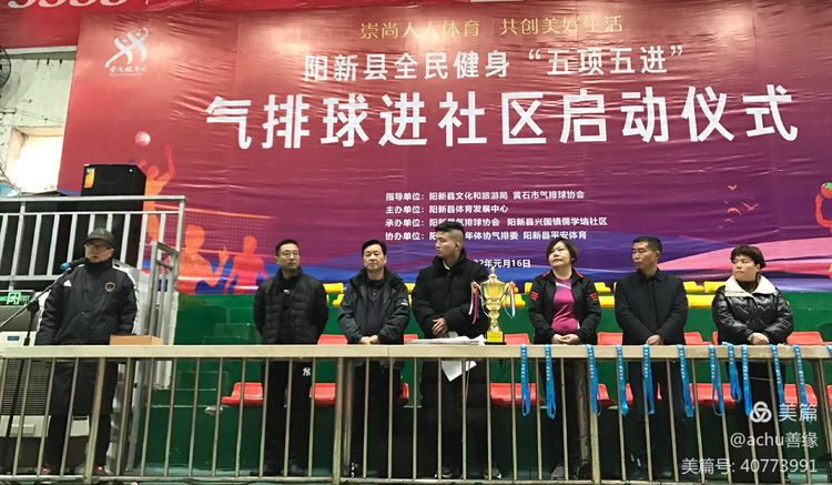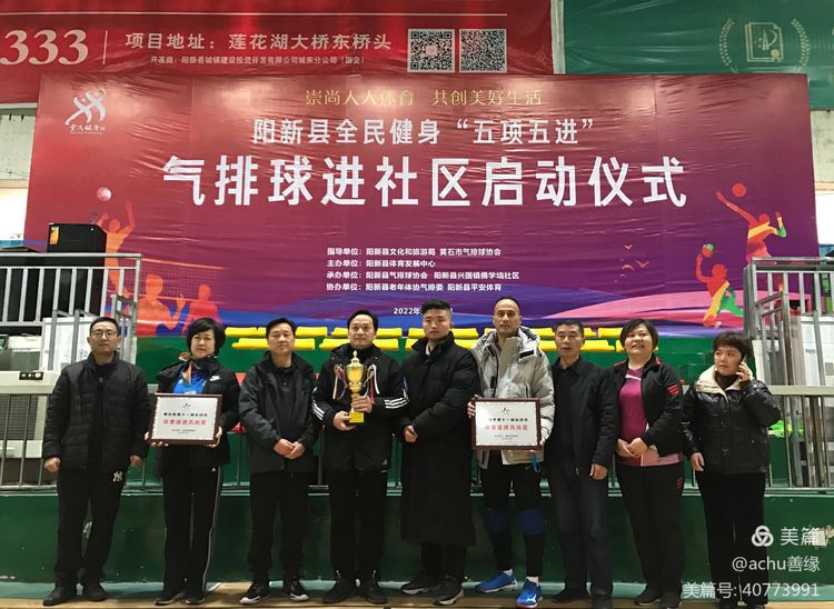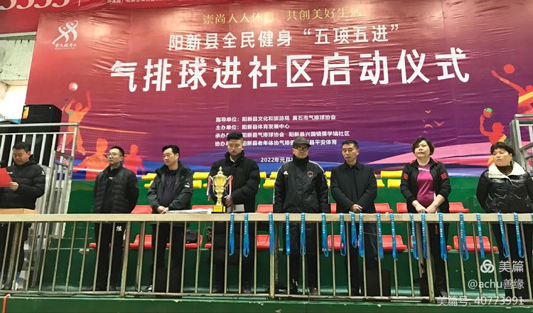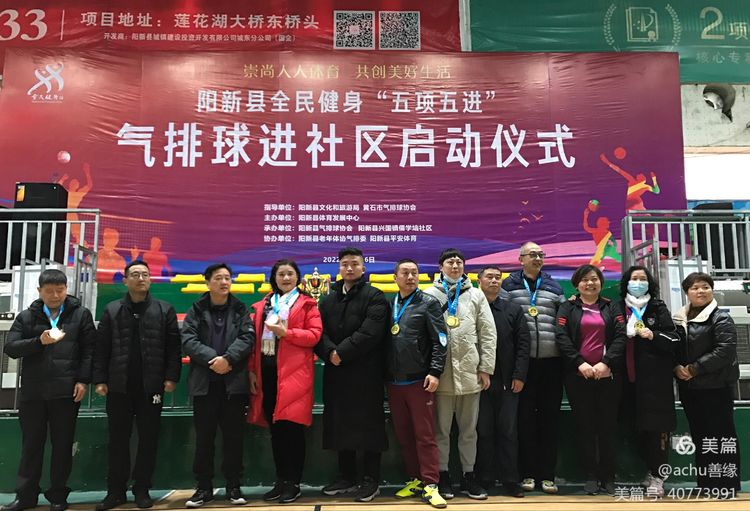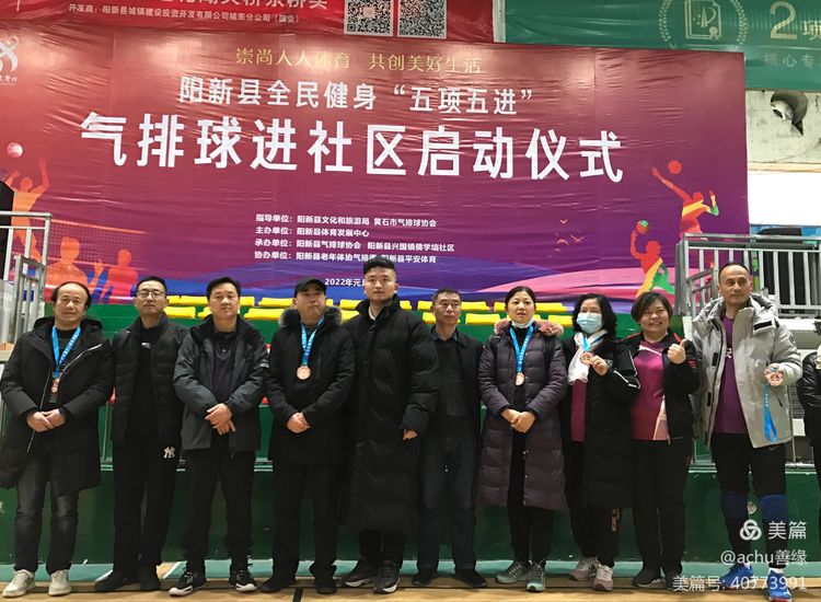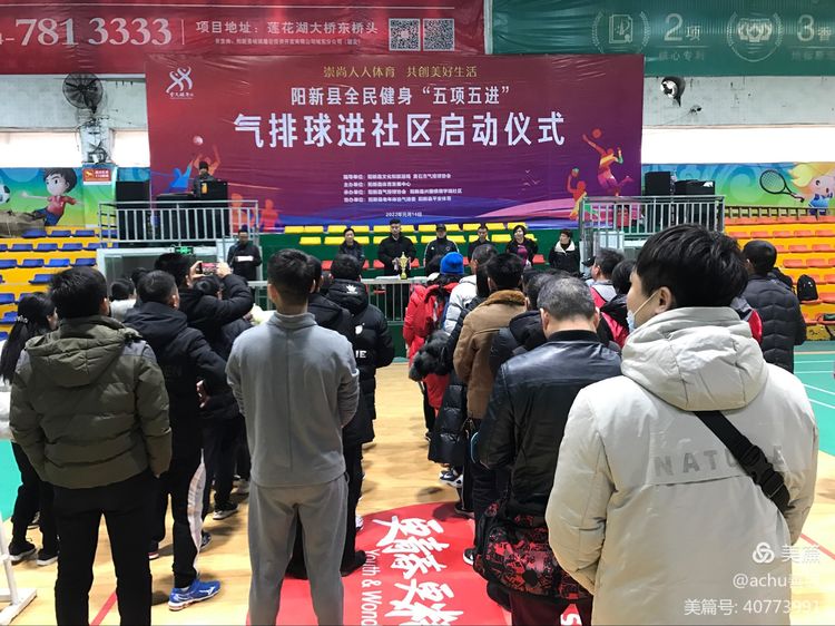 习主席说:“体育强则中国强”。2022年1月16号由黄石市体育发展中心、黄石气排球协会、阳新文旅局、阳新老年体育协会、阳新气排球协会共同组织的“气排球进社区启动仪式”和“黄石市第十一届运动会群众体育类气排球颁奖仪式”在阳新县体育馆正式启动。市体育发展中心领导韩流、阳新县文旅局局长胡文省、市气排球协会会长张建忠、县气排球协会会长王红智等领导及市县各俱乐部负责人参加。活动中既进行了教学辅导也进行了交流比赛。阳新县气排球进社区、进乡镇活动己全面开展。多支队伍积极参赛,体育馆外寒风呼呼,馆内参赛队员挥汗如雨,气氛活跃热烈,充分展现了我市中青年气排球队员的拼搏风采。