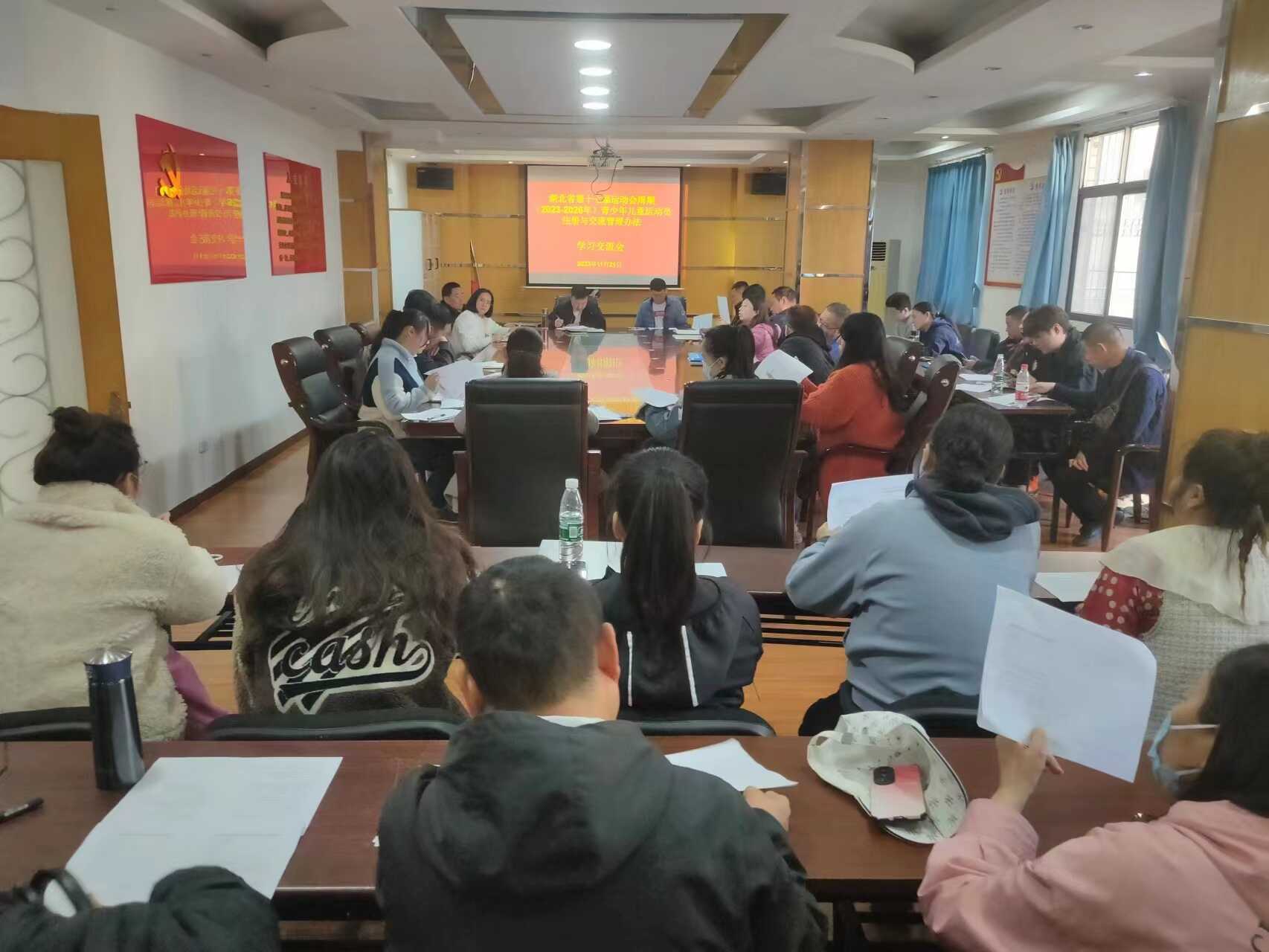 11月21日上午,《湖北省第十七届运动会周期(2023-2026年)青少年儿童运动员注册与交流管理办法》学习交流会在市体校三楼会议室举行,会议由体科所所长邱凤鸣主持,全市青少年体育各项目教练员受邀参会。
