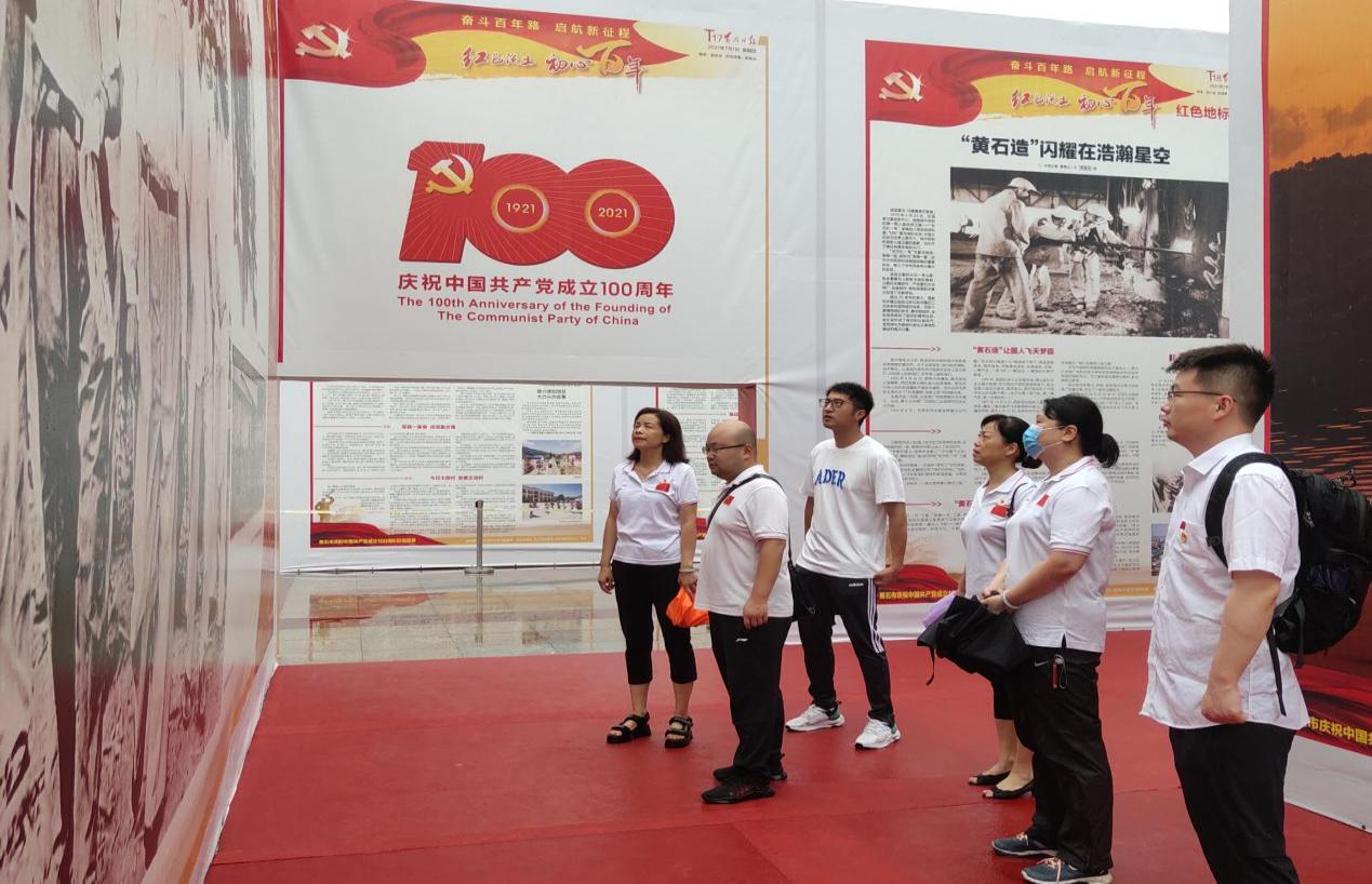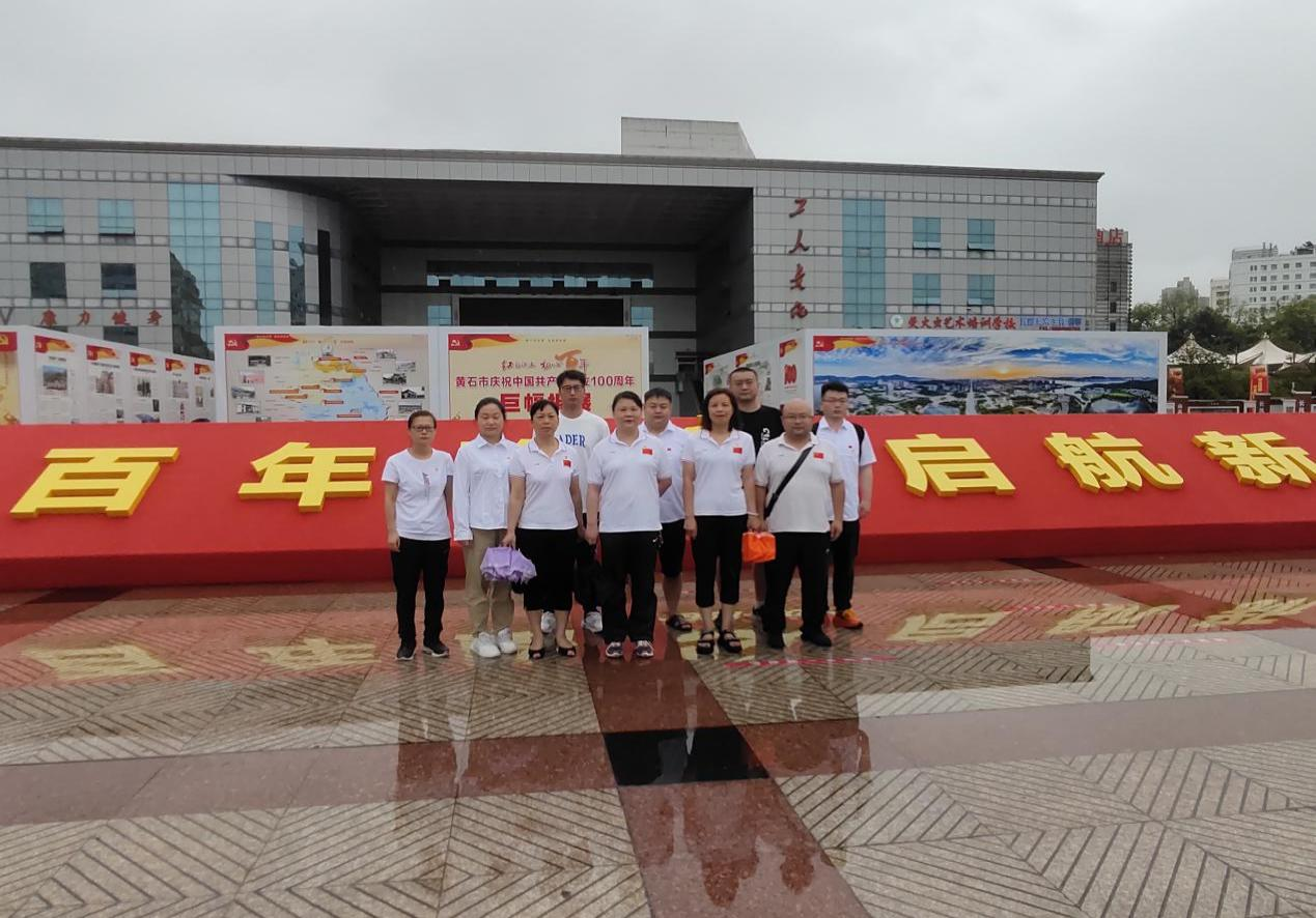 7月3日上午,国乒基地组织全体干部职工到工人文化宫广场,参观黄石市庆祝中国共产党成立100周年巨幅报展。