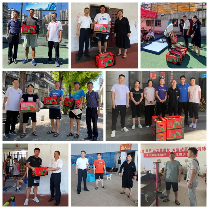 高温酷暑抓集训,烈日炎炎送清凉。8月5日,市体育事业发展中心三级调研员王铁强、竞体科科长向纹慧,市体校校长辜春华及校领导班子一行赴各训练场地(馆)看望慰问备战省运会的教练员,为他们送去了防暑降温慰问品,并与各教练员们进行了亲切交流,详细询问了运动员训练、食宿情况,同时叮嘱教练员要把安全放在首位,合理制定备战训练计划,特别针对近期的高温天气要适当调整训练时间和防暑降温措施,劳逸结合,避免中暑和过度训练等给身体带来的意外伤害。 最后,中心领导对教练员们在酷热天气里坚持训练给予了高度评价和充分肯定。同时提出集训备战目前处于冲刺阶段,各教练员们要顶住压力,克服困难,全力备赛。教练员们对领导的关怀和问候表示感谢,表态将争分夺秒,抓紧备战,以最佳的状态迎接省运会,为黄石体育事业增光添彩!