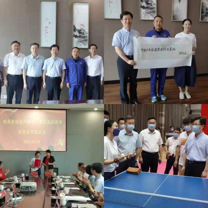 8月5日,黄石市委书记郄英才带领市体育事业发展中心、东楚投资集团有限公司、中国乒乓球队黄石训练基地、鄂东体育发展集团有限公司等单位主要负责人抵达威海市,就推进两地合作进行了为期两天的考察洽谈工作。经过前期考察磋商,中国乒乓球队黄石训练基地和威海南海国家乒乓球训练基地于8月6日下午在威海南海国家乒乓球训练基地成功签约。中国乒协主席刘国梁、威海市常务副市长林强出席了签约仪式,共同见证了两地携手合作的重要时刻,并对合作提出殷切希望。