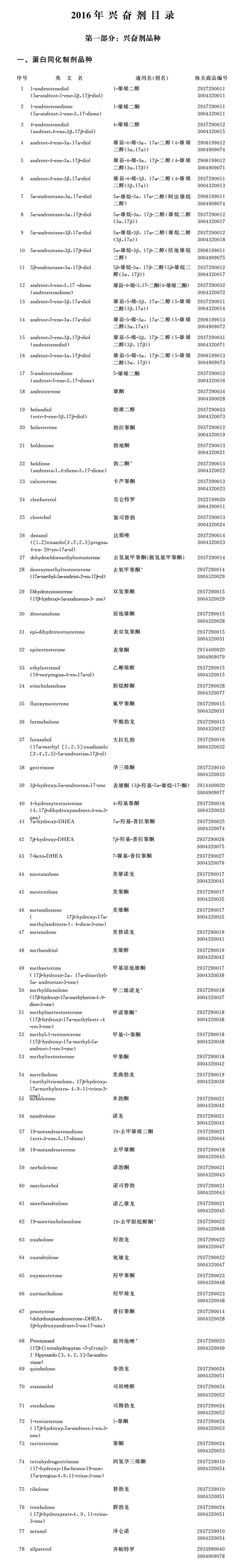 按照联合国教科文组织 《反对在体育运动中使用兴奋剂国际公约》和国务院 rn《反兴奋剂条例》的有关规定,现将2016年兴奋剂目录公布如下。